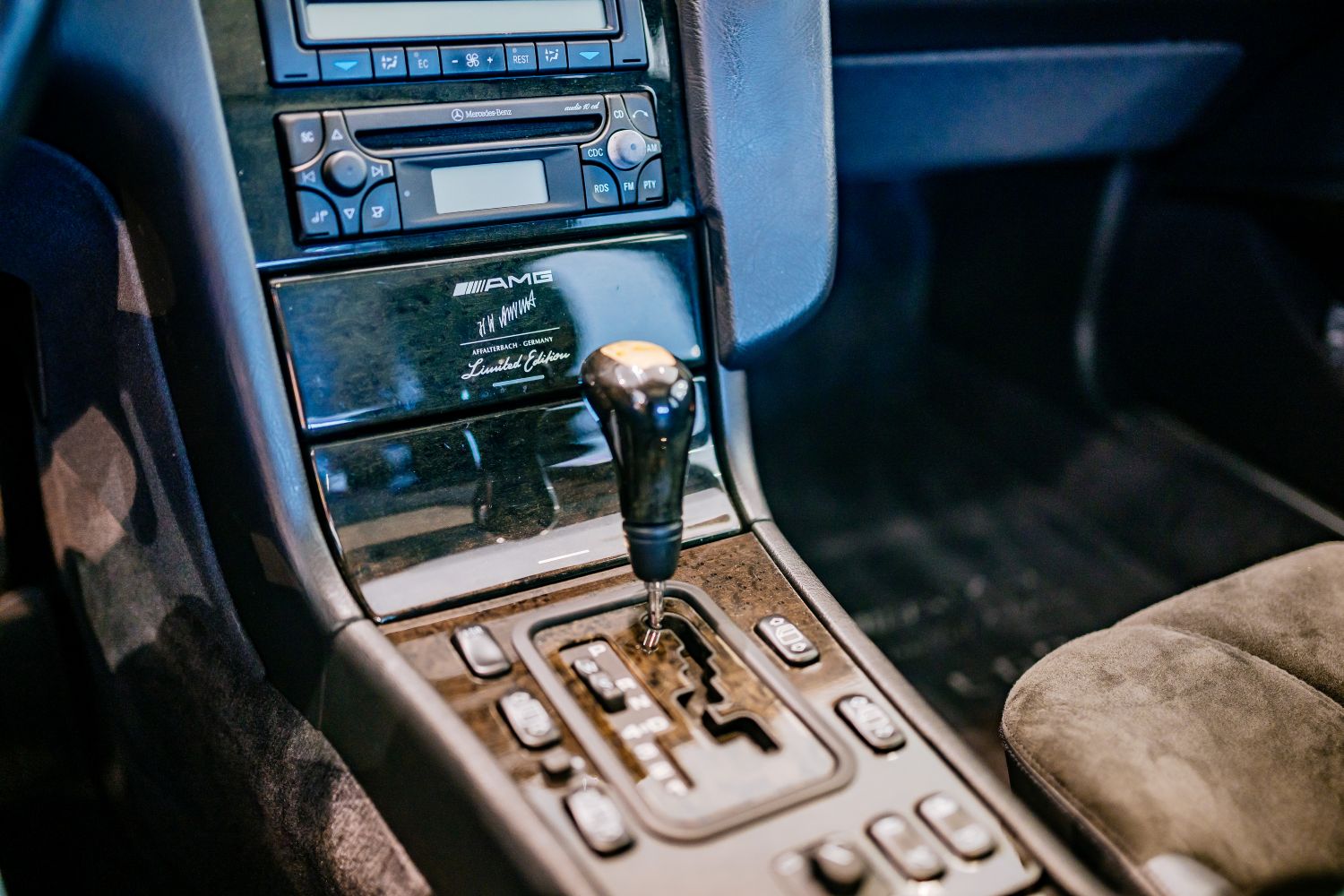 Na reliéfnych prahových paneloch dverí je označenie modelu, rovnako ako na radiacej páke či špeciálnych kobercoch. Na krycej chlopni v stredovej konzole sa nachádza podpis Hansa Wernera Aufrechta, spoluzakladateľa AMG. Nálepka s jeho podpisom zdobí aj zadné okno. Model bol vybavený AMG volantom s priemerom 390 mm, ktorý bol potiahnutý kožou s drevenými intarziami.