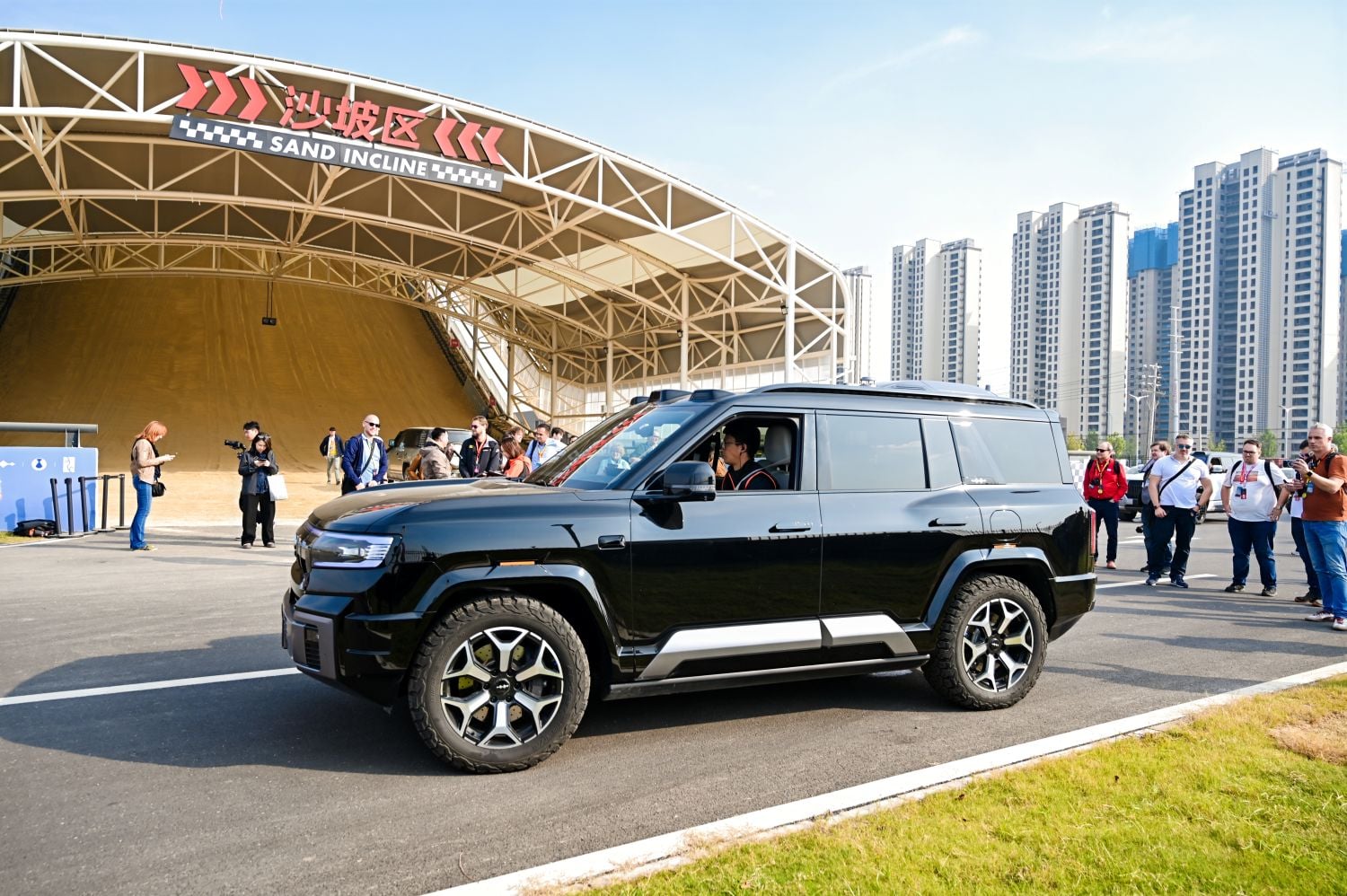 Kaskadér nám ukázal jazdu po umelo vytvorenej pieskovej dune s extrémnym sklonom 28 stupňov, ktorá je zapísaná v Guinessovej knihe rekordov ako najväčšia umelo vytvorená piesková duna. V modeli Denza Z9 GT sme si vyskúšali tzv. krabiu chôdzu a schopnosť otočiť sa o 360 stupňov na mieste, pri vytočených zadných kolesách a zablokovaných predných. Super zážitkom bola tiež jazda zručnosti medzi kužeľmi v Seal 6 DM-i či prejazd náročnými prekážkami v terénnom polygóne s modelom Denza B8.