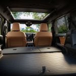 Povrchy na sedadlách, konzole, dverách a prístrojovej doske sú potiahnuté farbou Capri, jemným syntetickým materiálom bez kože, ktorý je doplnený výraznými akcentmi. Strop a koberce sú vyrobené z recyklovaného materiálu. Pre ešte lepší zážitok z jazdy pod holým nebom je Jeep Recon štandardne vybavený audiosystémom Alpine. Reproduktory boli presunuté z tradičných úchytov na dverách pod sedadlá, čím zabezpečujú nepretržitú kvalitu zvuku aj po demontáži dverí. Nadšenci terénnych jázd ocenia aj novú aplikáciu Trails Offroad, ktorá ponúka komplexného sprievodcu po trasách v USA a Kanade, teraz aj s mapami náklonu a nakláňania.