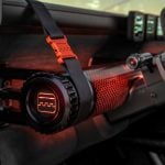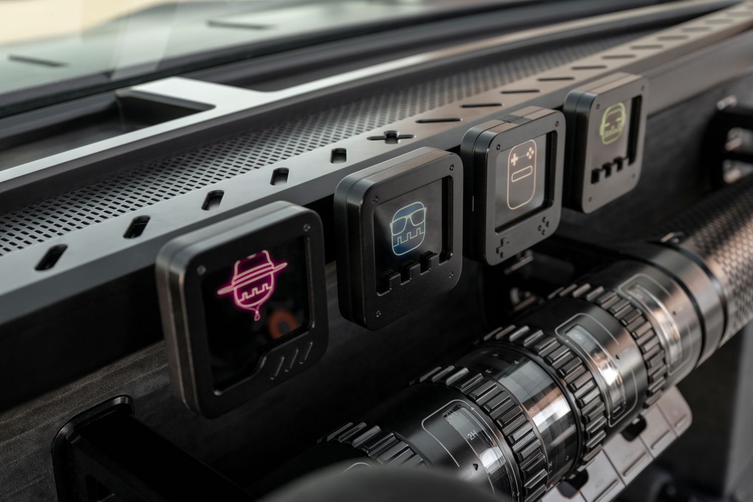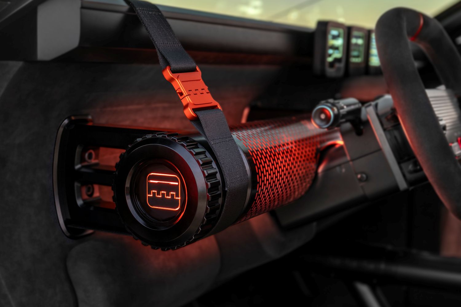 Strešná plošina poskytuje ideálny montážny bod pre pomocné osvetlenie, dodatočný úložný priestor a ďalšie terénne príslušenstvo. Dvojica tenkých, ale pevných lán tiahnucich sa od prednej kapoty až po strechu chráni karosériu pred nízko visiacimi konármi na úzkych a zarastených cestách. Zaujímavým a celkom vtipným detailom je jeden z vyťahovacích hákov, ktorý zároveň slúži aj ako otvárač fliaš. Mimoriadne funkčne sú vyriešené bočné zrkadlá s integrovanými baterkami. V núdzových situáciách ich možno z vozidla vybrať.