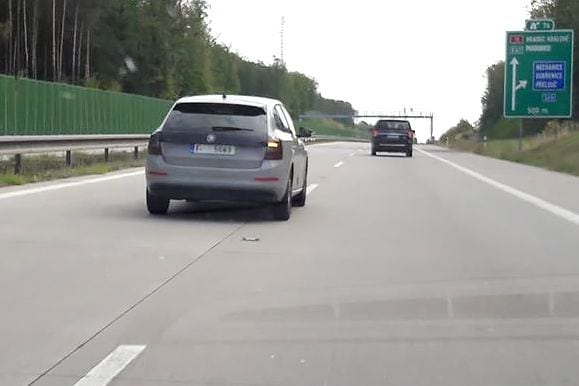 Ako prvé zaujmú určite výrazné predné svetlomety, ktoré aj pod maskovaním nadobúdajú tvar tých, ktoré sú na aktuálnych nákresoch. Ďalej je jasne vidieť, že sa nejedná o klasický model Rapid SpaceBack. Podľa čitateľa, ktorý cestoval na služobnú dovolenku, bolo na danom úseku diaľnice D11 omnoho viac prototypov. Okrem zachyteného šedého modelu, ktorý zatiaľ nemá jasné meno sa tu vyskytoval rovnaký prototyp v modrej farbe a zamaskovaný Karoq.