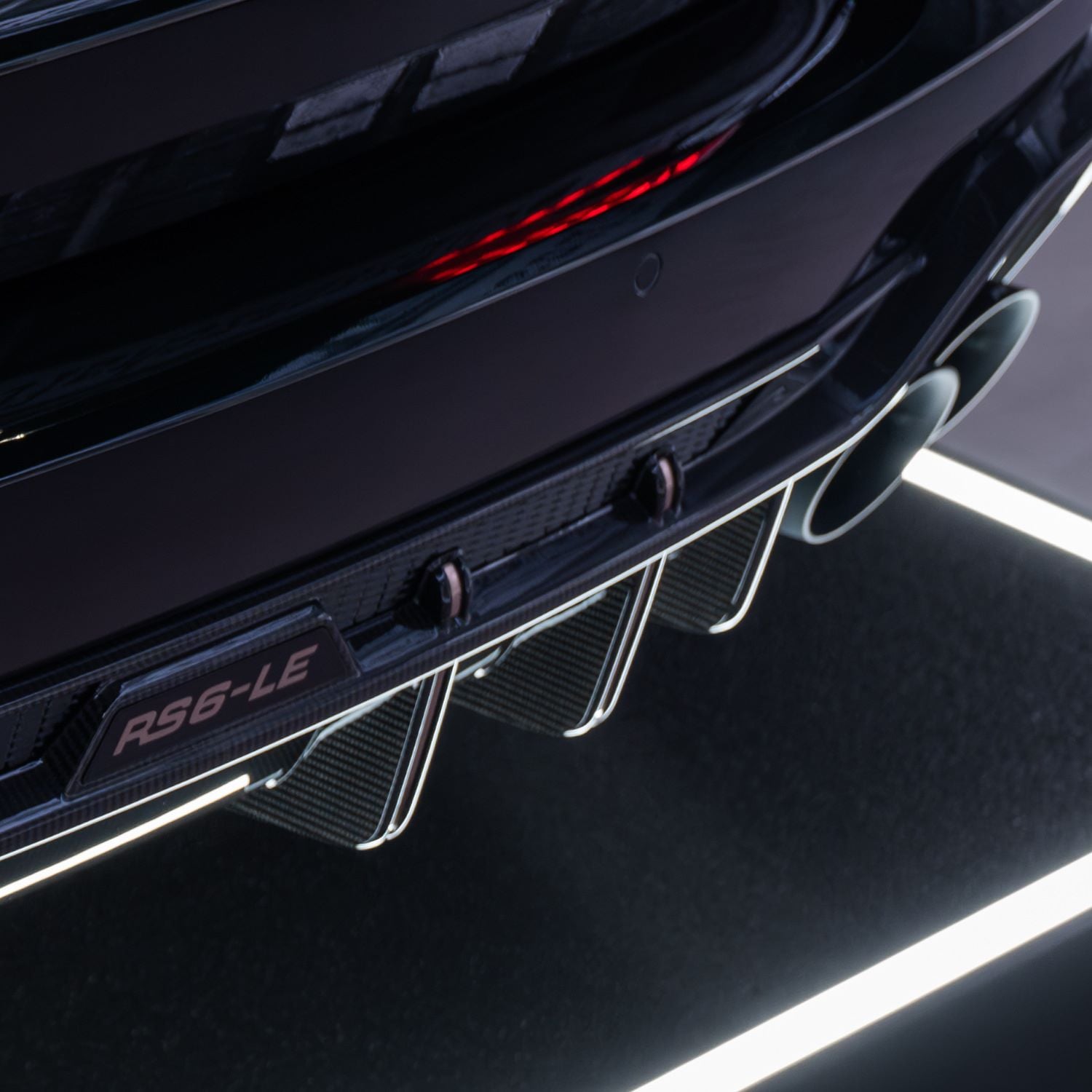 Jedným z najvýraznejších prvkov RS6-LE 800 je špecifická farebná identita označovaná ako „Neodym“. Ide o zlatistý odtieň, ktorý sa objavuje na viacerých detailoch vozidla – od log až po dizajnové prvky karosérie. Dominantným prvkom sú 22-palcové kované disky kolies v saténovo zlatej farbe, ktoré kontrastujú s rozsiahlymi karbónovými komponentmi karosérie.