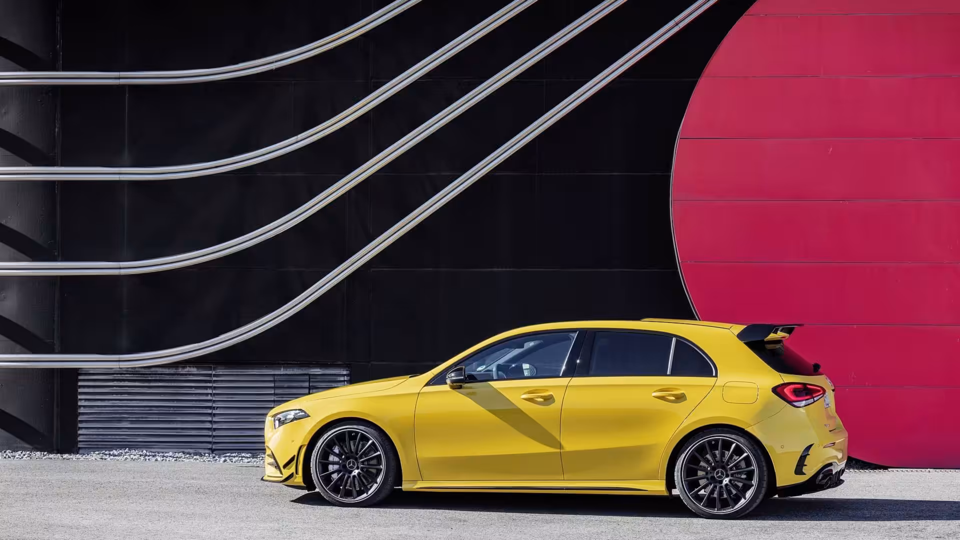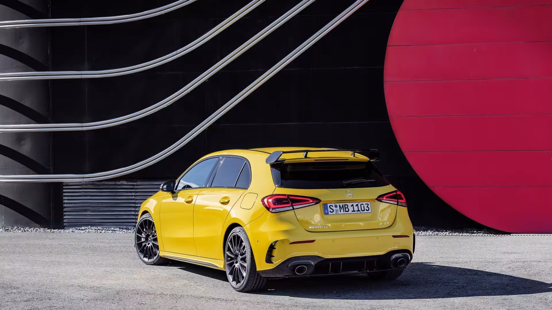 K agresívnosti mu dopomáha agresívnejší vzhľad vďaka predným splitterom, ľahkými 18-palcovými kolesami, neprehliadnuteľným zadným krídlo, ktoré je známe už od predchodcu v podaní A45 AMG. Z exteriérového davu vyčnieva aj nanovo spravený zadný difúzor.