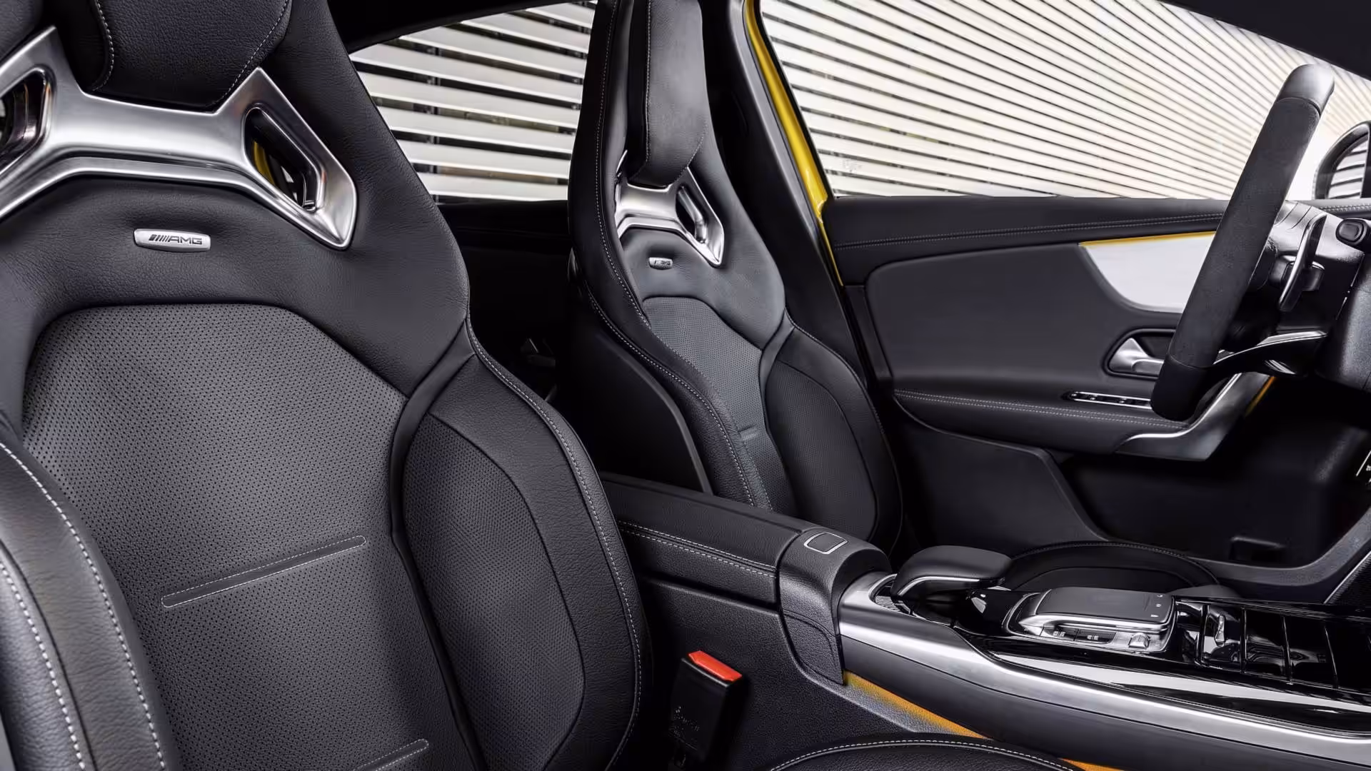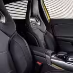 V interiéri novinky sa nachádzajú už známe sedačky AMG, Alcantarový volant a kontrastné prešívanie dekoru. Vďaka infotainmentu MBUX budete môcť sledovať aj to ako sa Vám darí na okruhu. Budete tak môcť si odsledovať časy jednotlivých pokusov na okruhu a či ste v jednotlivých sektoroch rýchlejší alebo naopak pomalší. Po dokončení jazdy si taktiež budete môcť skontrolovať telemetriu, zrýchlenie, brzdenie, preťaženie a podobne.