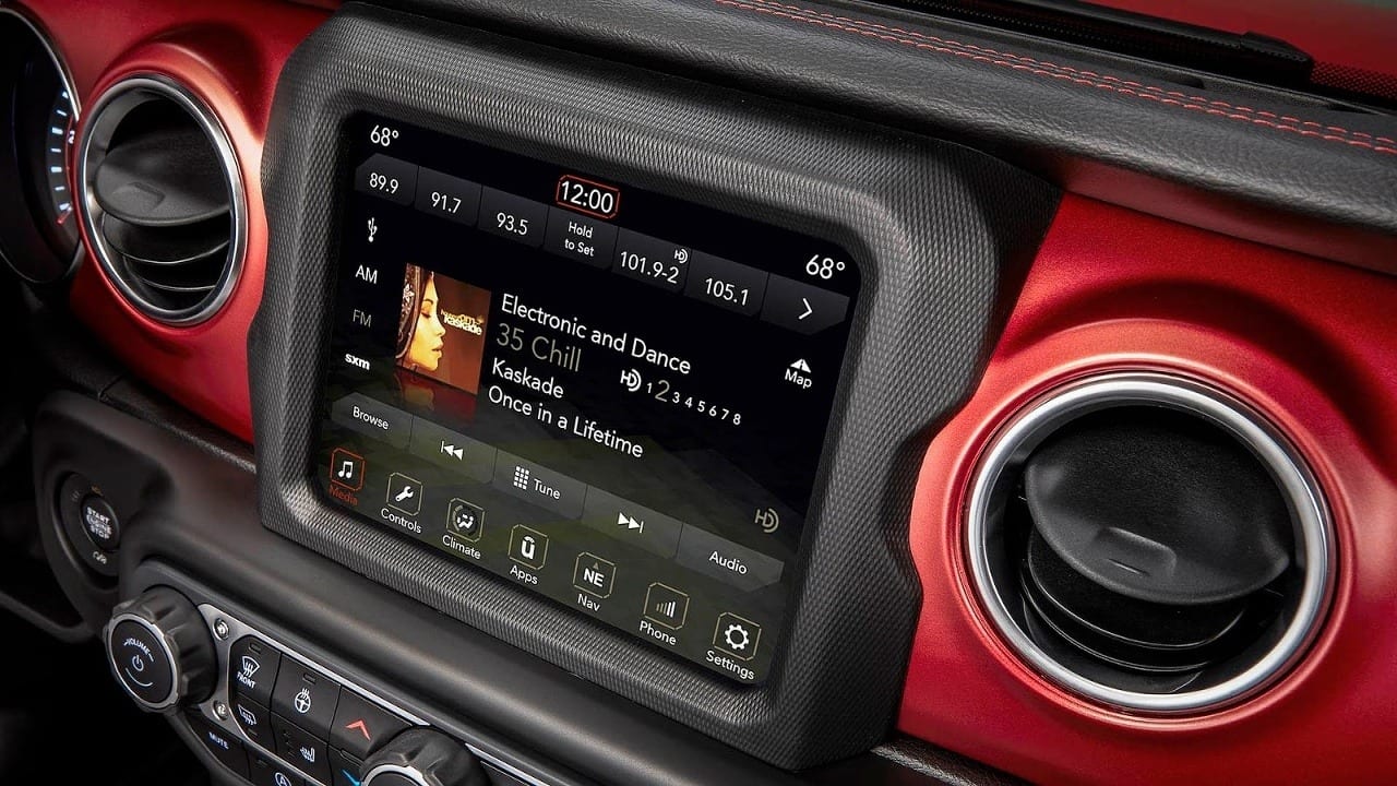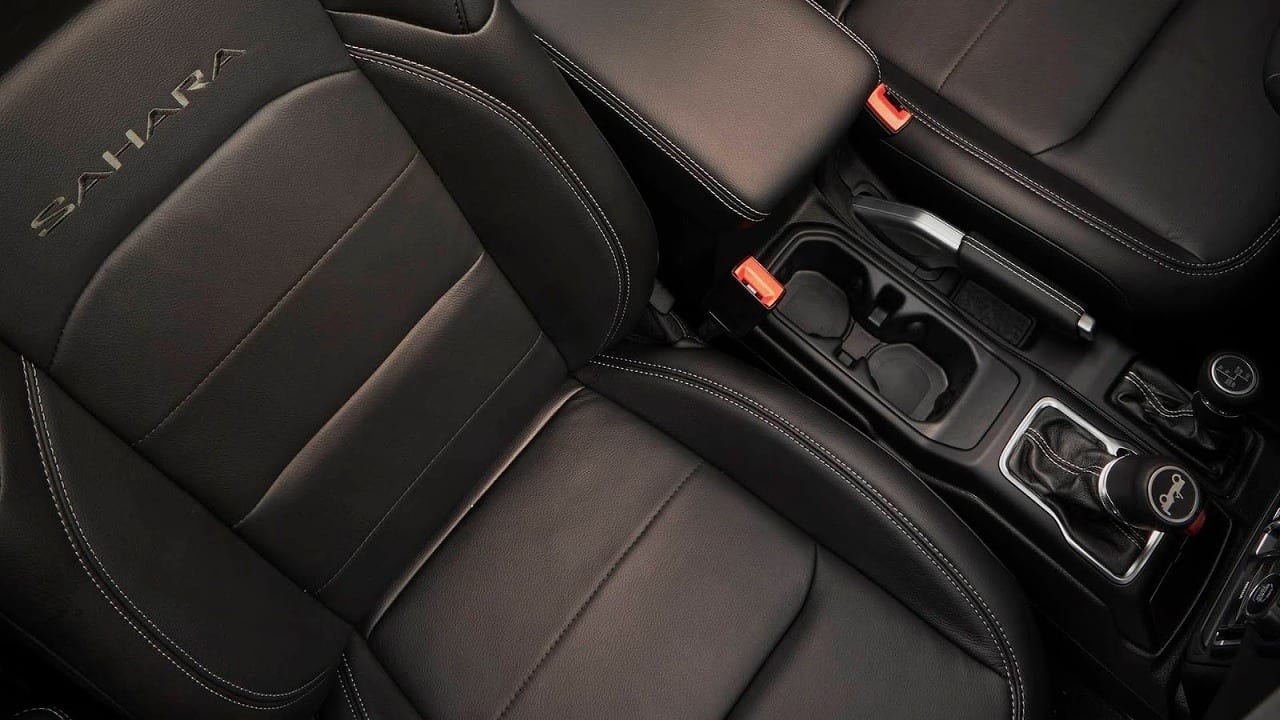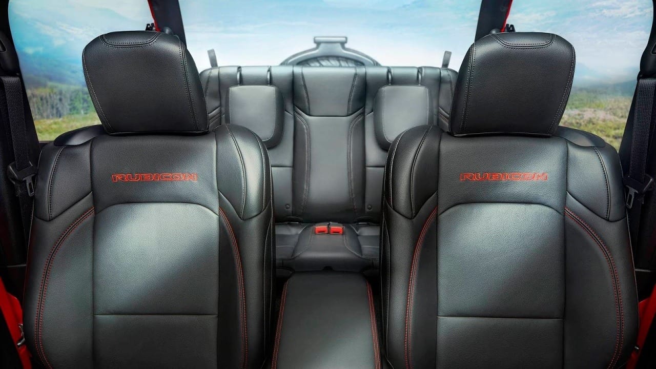 Čo sa týka interiérovej časti, tak Wrangler má za sebou veľký pokrok. Odkazov na Willis nájdete aj tu. Úctu mu vzdáva rovno horizontálne uloženie palubnej dosky. Lepšie výbavy majú v ponuke koženú palubovku, kvalitnejšie plasty, či kovové obloženia. V závislosti od výbavy môžete zvoliť aj displej s uhlopriečkami 5, 7 a 8,4 palca s multimediálnym systémom Uconnect.
