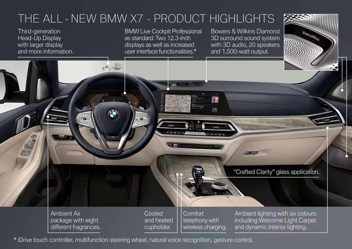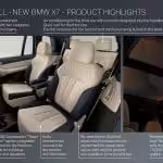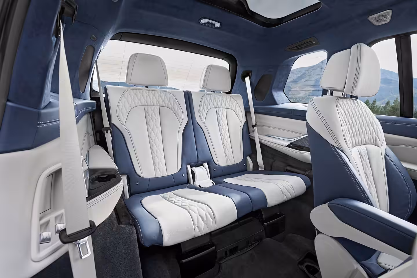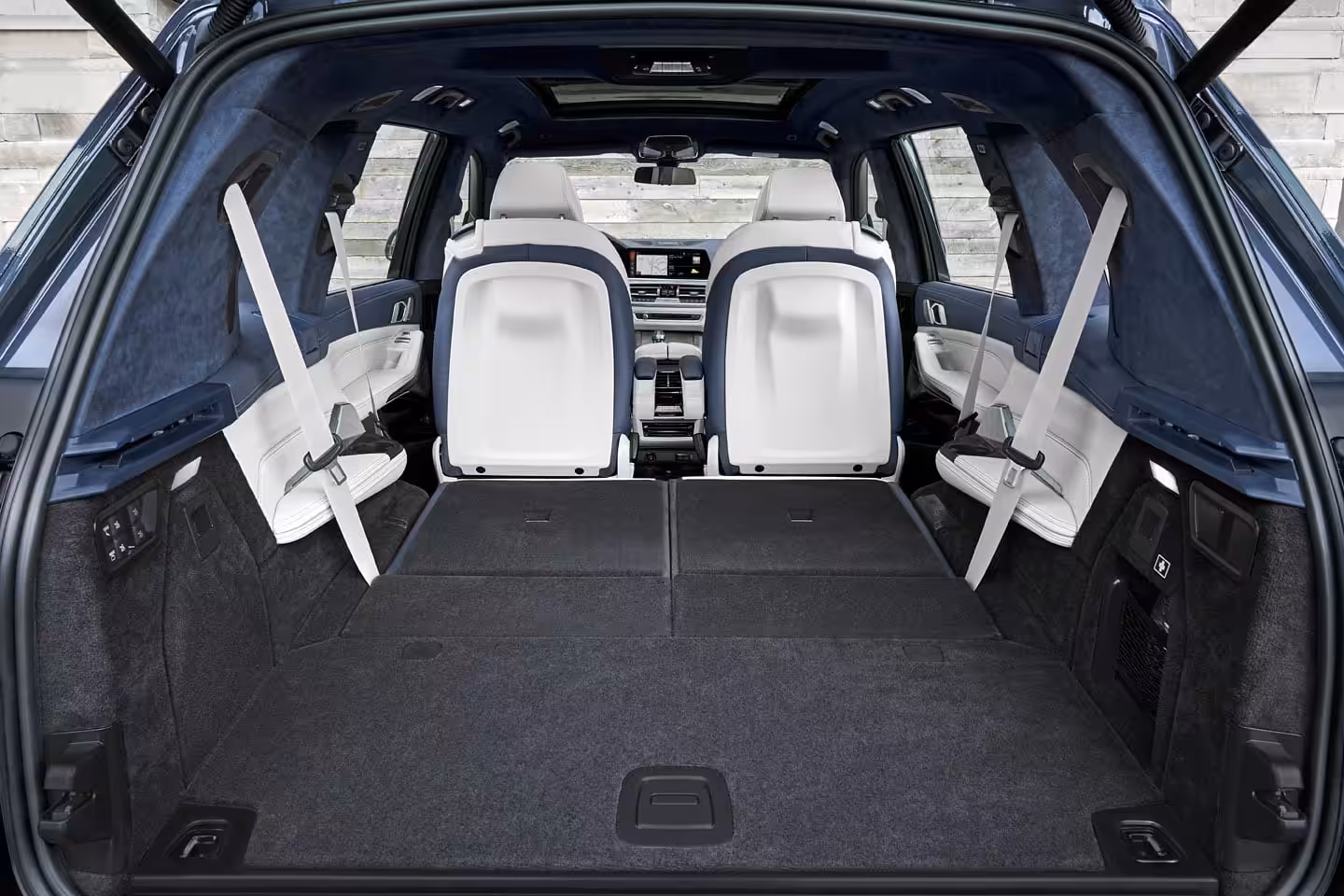 Štandardom v novej X7 taktiež budú tri rady sedadiel. Vozidlo tak odnesie až sedem osôb naraz. Automobilka zdôrazňuje, že práve tretiu radu sedadiel tvoria dve plnohodnotné kreslá, ktoré zoberú aj dospelé osoby a na dlhých trasách si ani neuvedomíte, že sedíte nad kolesami. BMW taktiež tvrdí, že aj keď budete mať vyklopený tretí rad sedadiel, stále ostane priestor v kufri až 326 litrov.