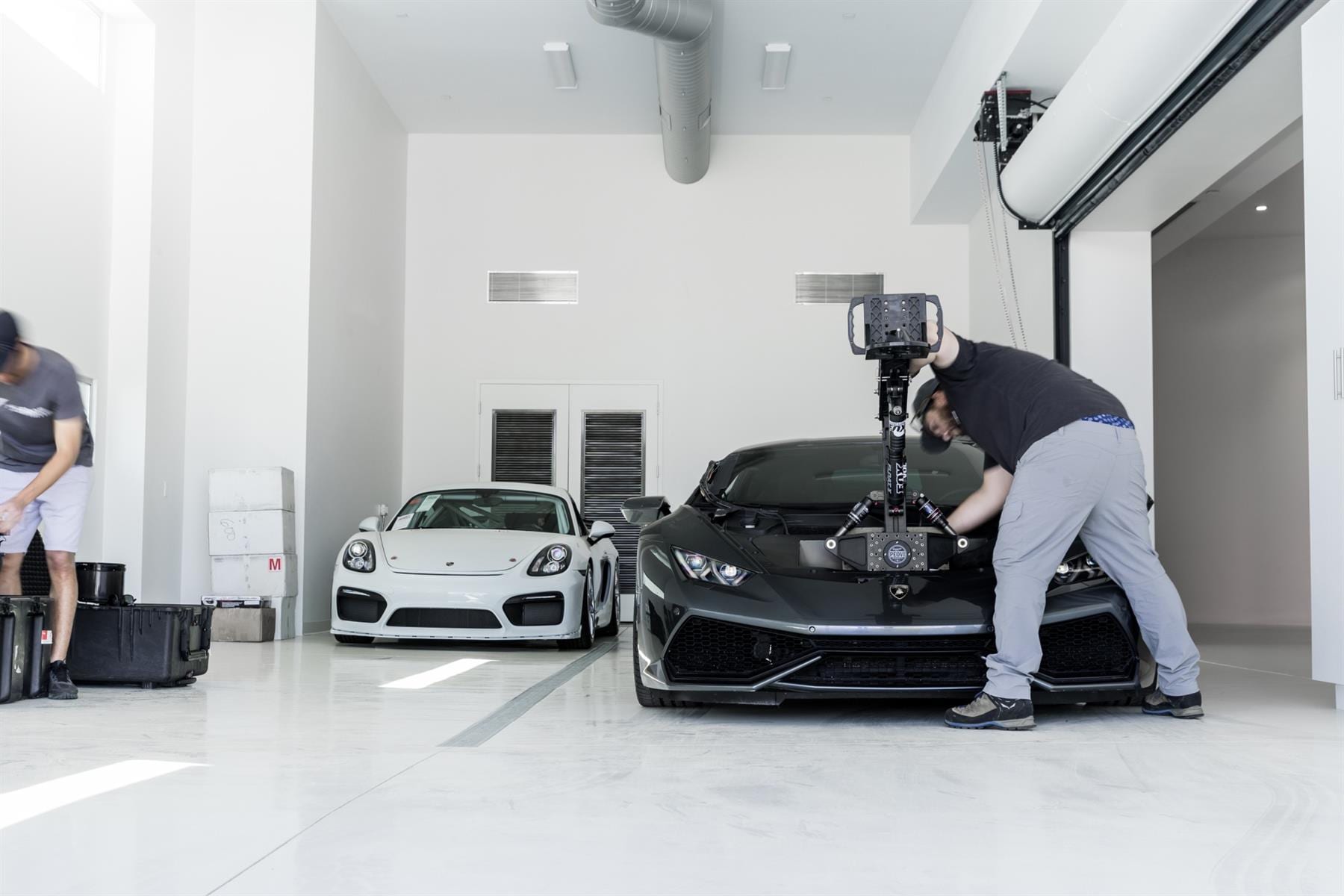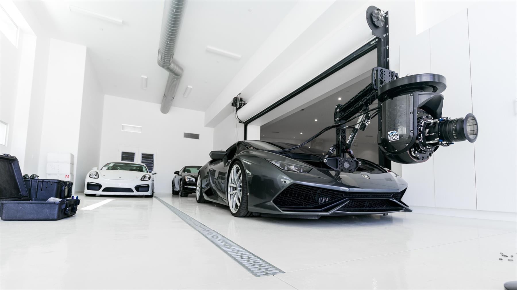 Gyroskopická kamera je umiestnená v priestore bývalého kufrového priestoru a jej pohyb je ovládaný skrz konštrukciu pohyblivých ramien a kĺbov pasažiera vnútri vozidla. Ak si však myslíte, že práve Huracán je tým najdrahším kusom techniky v tejto symbióze, tak sa mýlite. Hodnota špeciálneho kamerového žeriavu presahuje hodnotu pol milióna dolárov. Cena Lamba je tak polovičná.