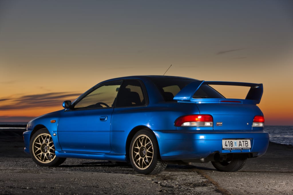 Ak sme spomenuli Lancer Evolution, nemôžeme vynechať jeho úhlavného nepriateľa Subaru Imprezu WRX STI. Prvá Impreza WRX s označením GC8A prišla v roku 1992 s plochým prepĺňaným štvorvalcom, ktorý produkoval výkon 177 kW (240 k). Prvé STI prišlo o 2 roky neskôr a ponúkalo o 10 koní vyšší výkon spolu s inými úpravami. Ak túžite po prvej generácii WRX STI, ideálne pôvodnú trojdverovú verziu 22B s výkonom 280 k, pripravte si aspoň 30-tisíc eur.