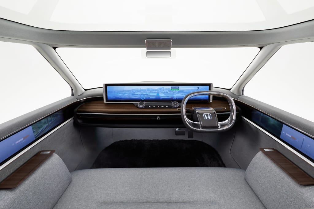 Interiéru prototypu dominuje širokouhlá obrazovka na palubnej doske a pohovka pripomínajúca obývačku. Futuristický dizajn nenarúšajú žiadne zbytočné výduchy, otvory a tlačidlá. Na dverách, ktoré sa otvárajú v protismere jazdy, sú zvnútra umiestnené obrazovky, ktoré premietajú obraz externých kamier, ktoré majú nahradiť spätné zrkadlá. A ako to s najväčšou pravdepodobnosťou bude v prípade sériovej verzie? Nuž, s najväčšou pravdepodobnosťou nie, ako to už pri konceptoch býva. Avšak do sériovej podoby by sa tak po vzore Audi e-tron a Lexus ES mali dostať kamery namiesto spätných zrkadiel.