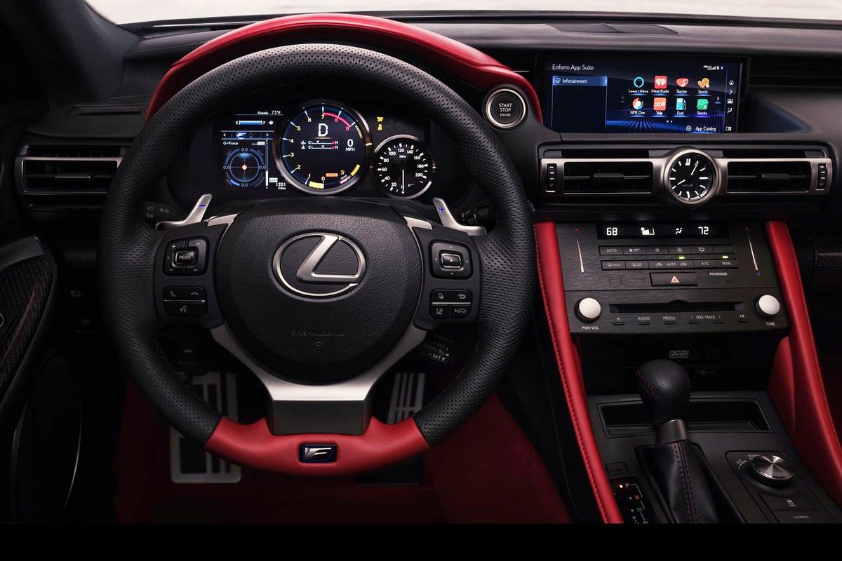 Minulý rok, sa kupéčko RC dočkalo modernizácie. O rok neskôr sme sa dočkali modernizácie vrcholnej verzie RC F. Akousi vzácnosťou je, že pod kapotou sa nachádza 8-valcový motor, ktorý sa už len tak nevyrába. Obmedzenie bude iba vo výkonnostnej časti. Na dynamike vozidla sa to však prejaviť nemá, nakoľko novinka prešla výraznou diétou. Sanie je ľahšie, tak isto aj menší kompresor klimatizácie, hliníkové ramená či uchytenia tlmičov.
