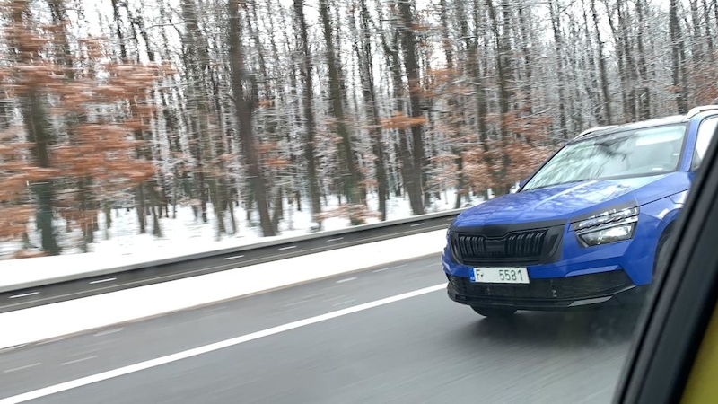 Automobilka sa testovacie vozidlo zo zadnej časti snažila zamaskovať do tvarov väčšieho modelu Karoq, no prednej časti sa maskovanie takmer neušlo. Je tak jednoznačne vidieť delené predné svetlomety, tak ako tomu bolo na zmienenom prototype Vision X. Okrem toho je na zadnej časti pri predbiehaní a následnom radení vozidla vidieť dynamické smerové svetlá, ktoré sú pri novom Kamiqu očakávané. Protoyp bol zachytený na českej diaľnici D11 smerujúcej na Hradec Králové, na ktorej je výskyt testovacích áut Škody v posledných rokoch pomerne veľký.