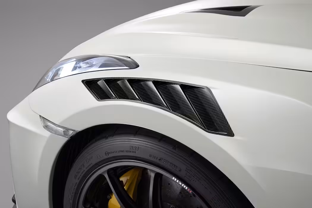 Nissan GT-R Nismo pre nadchádzajúci modelový rok zdieľa všetky uskutočnené zmeny na báze závodnej verzie GT3. Karoséria pozostáva z uhlíkových vlákien, čo viedlo k poklesu hmotnosti o 30 kilogramov. Pozornosť si zaslúžia aj predné blatníky, ktoré majú po novom výrazne vykrojené výduchy nad kolesami.