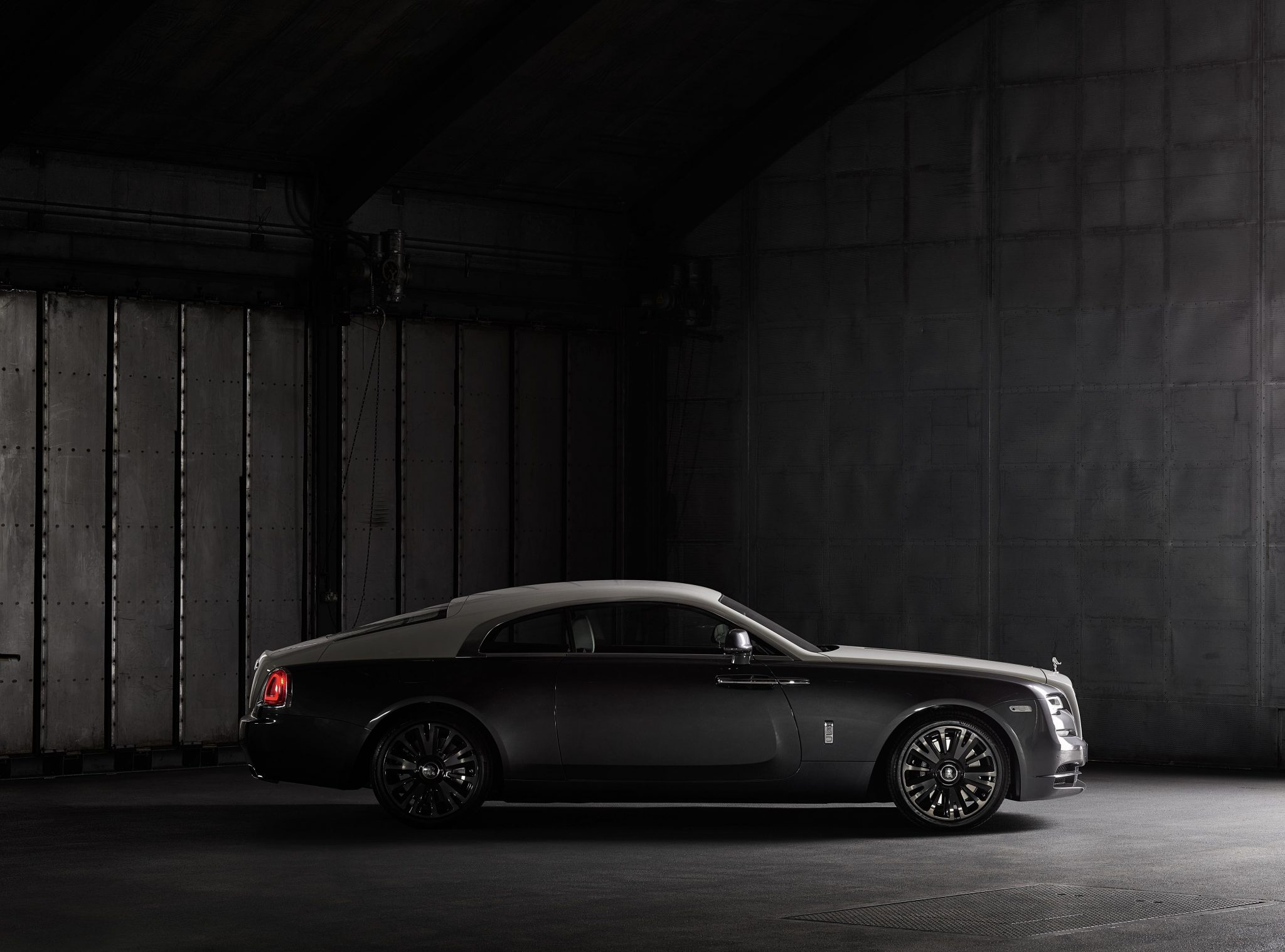 Exteriér vozidla má pripomínať napínavé nočné dobrodružstvo. Lakýrnici použili dva odtiene farby Selby Grey, ktoré sú oddelené jemnou líniou typickou pre model Wraith. Kým tmavý odtieň reprezentuje nočnú oblohu, bledší pripomína hmlu, ktorá pilotom ešte viac znepríjemňovala let. Tmavá maska pripomína kryty motorov lietadla a rovnako boli zatmavené aj majestátne disky kolies.