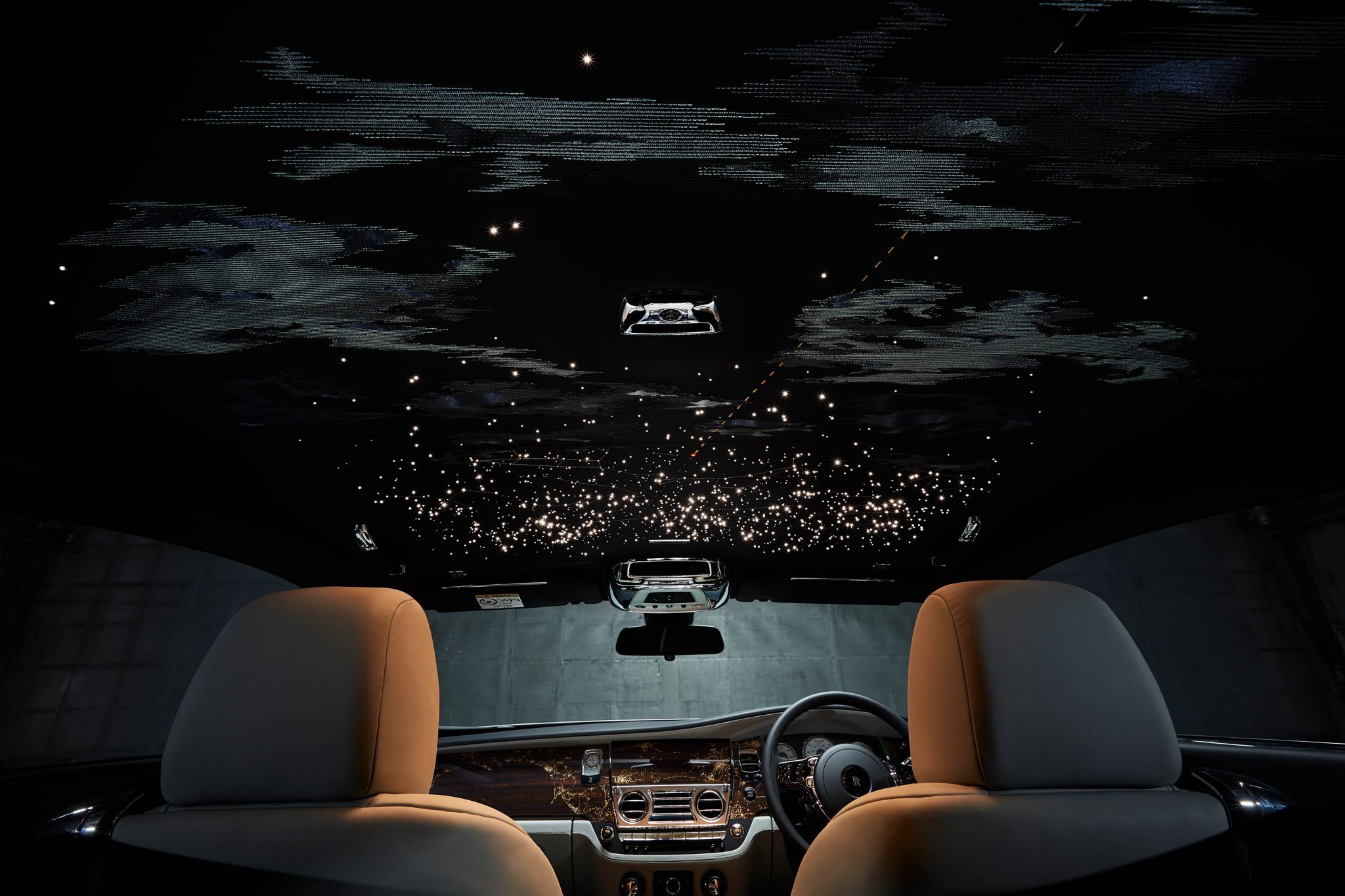 V interiéri nečakajte nič iné ako dokonalú harmóniu materiálov a tvarov. Výtvory, ktoré na kapote hrdo nesú emblém Spirit of Ectasy disponujú aj prepracovanými stropnicami. Strop tejto limitovanej edície pozostáva z 1183 svietiacich vlákien zobrazujúcich nočnú oblohu v rovnakom rozpoložení, v akom bola počas už spomínaného letu. Hviezdy dopĺňa aj informácia o polohe lietadla v polovici cesty. Čalúnenie je farbou veľmi podobné exteriéru, mosadzné prvky majú zase pripomínať takzvaný sextant, ktorý slúžil na navigáciu pri transatlantických letoch.