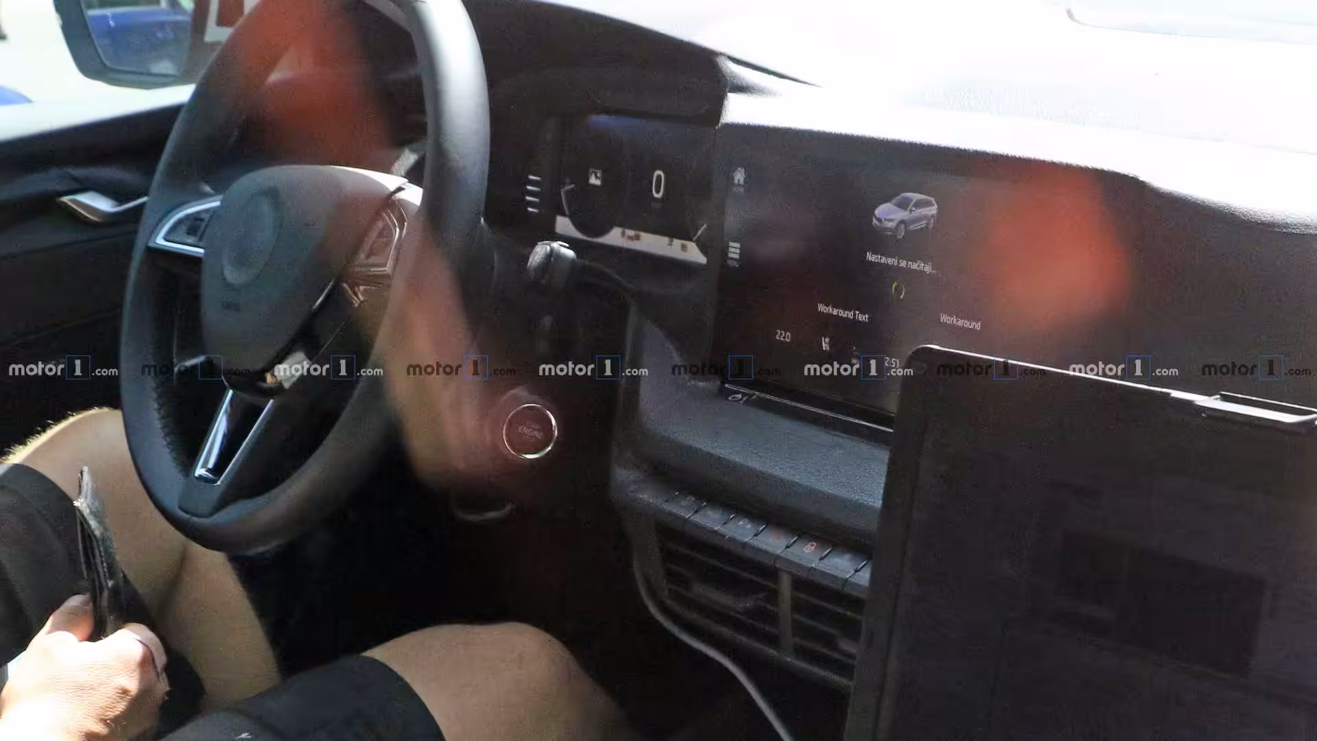 No vráťme sa na začiatok. Z obrovského displeju môžeme vidieť, že infotainment je v akomsi “domovksom” režime. A práve v tom spočíva celá podstata článku. Tento režim totiž odhaluje vozidlo v prevedení kombi, bez maskovania. Nasvedčujú tomu aj ostré a agresívne rezané línie auta, ktoré sa má dizajnovo inšpirovať v aktuálnej novinke na našom trhu, v modeli Scala. Z neho práve vychádza aj celková koncepcia interiéru, ktorá je postavená na digitalizácii a voľne stojacom stredovom displeji. Okrem toho, informácii, že sa jedná skutočne o očakávanú Octaviu nahráva aj fakt, že novinka by mala byť predstavená najskôr vo verzii kombi a až neskôr by sa mal pridať klasický liftback.