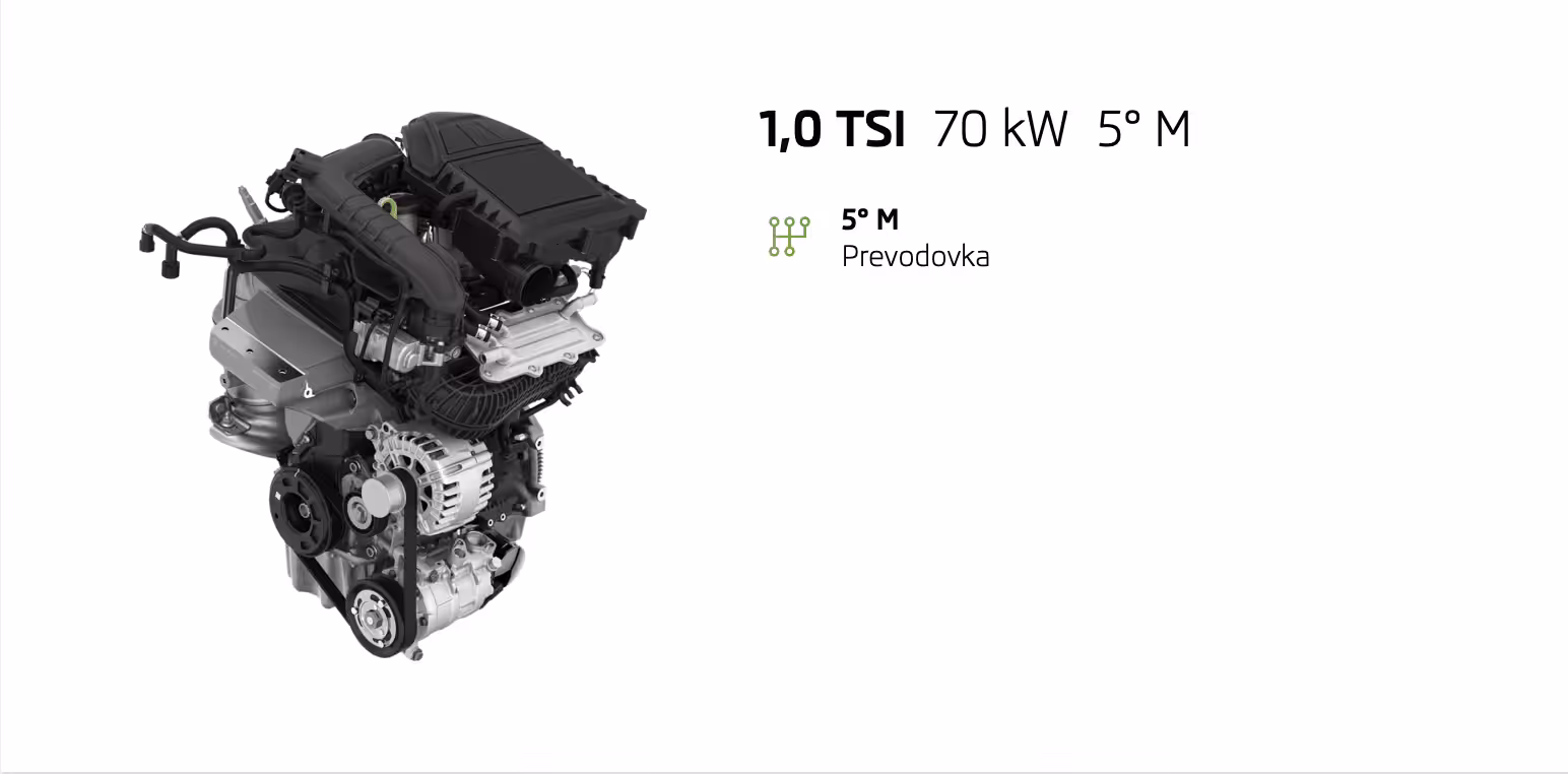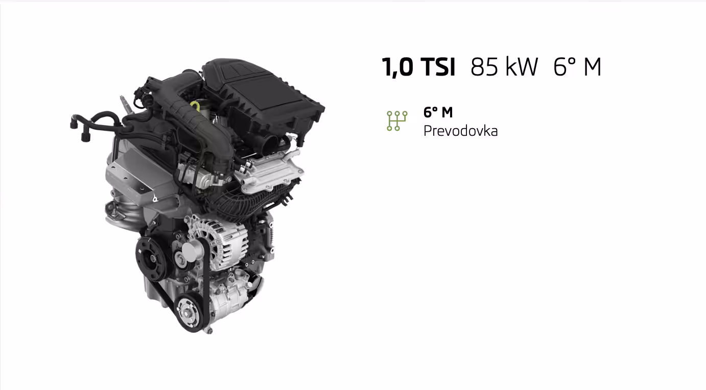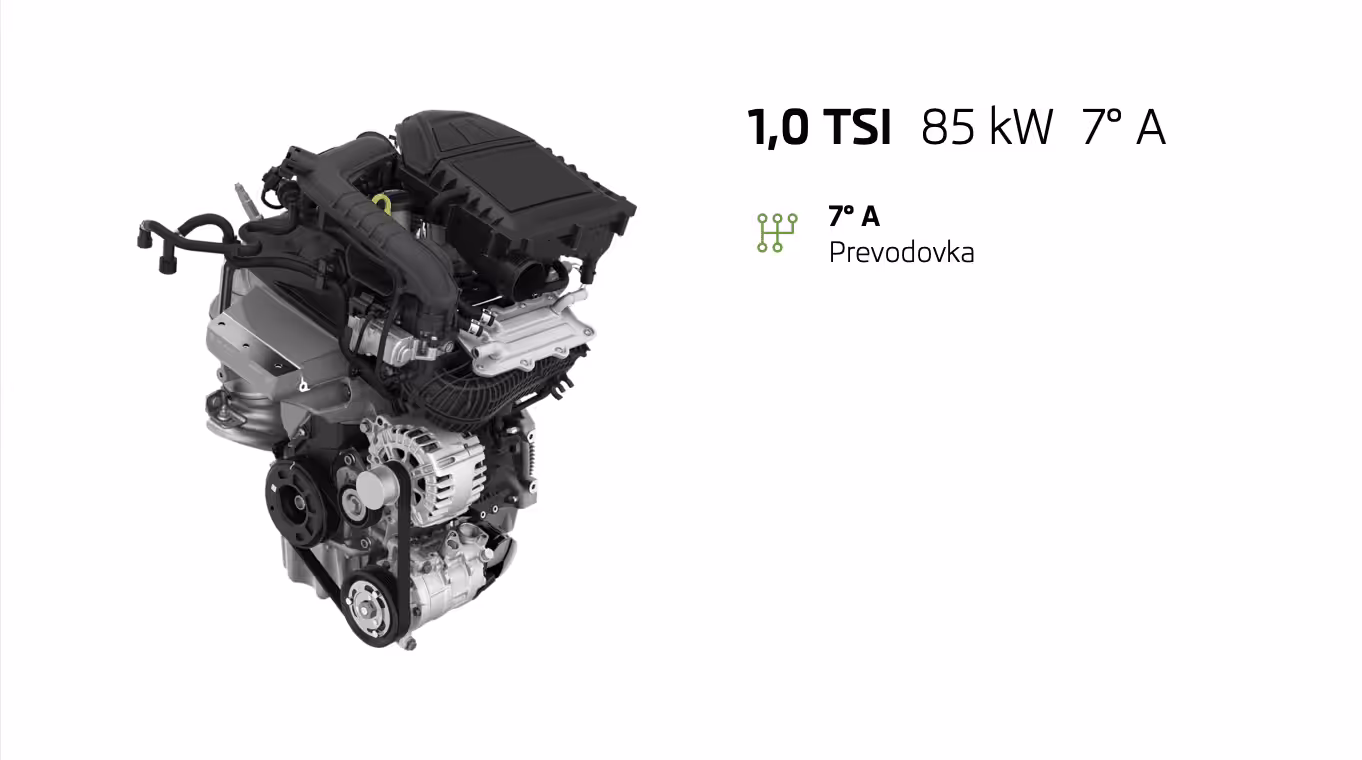 Active bude v ponuke so základným motorom 1,0 TSI s výkonom 70 kW. Už v štandarde dostanete množstvo užitočných asistentov, ako napríklad Front Assist, Lane Assist či Easy Light Assist. Ďalej za cenu 14 990€ môžete počítať s manuálnou klimatizáciou s peľovým filtrom, 6,5-palcovým displejom infotainmentu SWING, bezkľúčové štartovanie, asistent rozjazdu do kopca, LED hlavné svetlomety Maxi DOT displej či predĺženú záruku na 5 rokov alebo 100 tisíc kilometrov. Okrem toho za príplatok ďalších 199€ môžete dostať balík Active plus, ktorý ponúka navyše komfortné telefonovanie s Bluetooth, lakťovú opierku JUMBO BOX, 2x USB-C vpredu a 2x USB-C vzadu a tempomat.