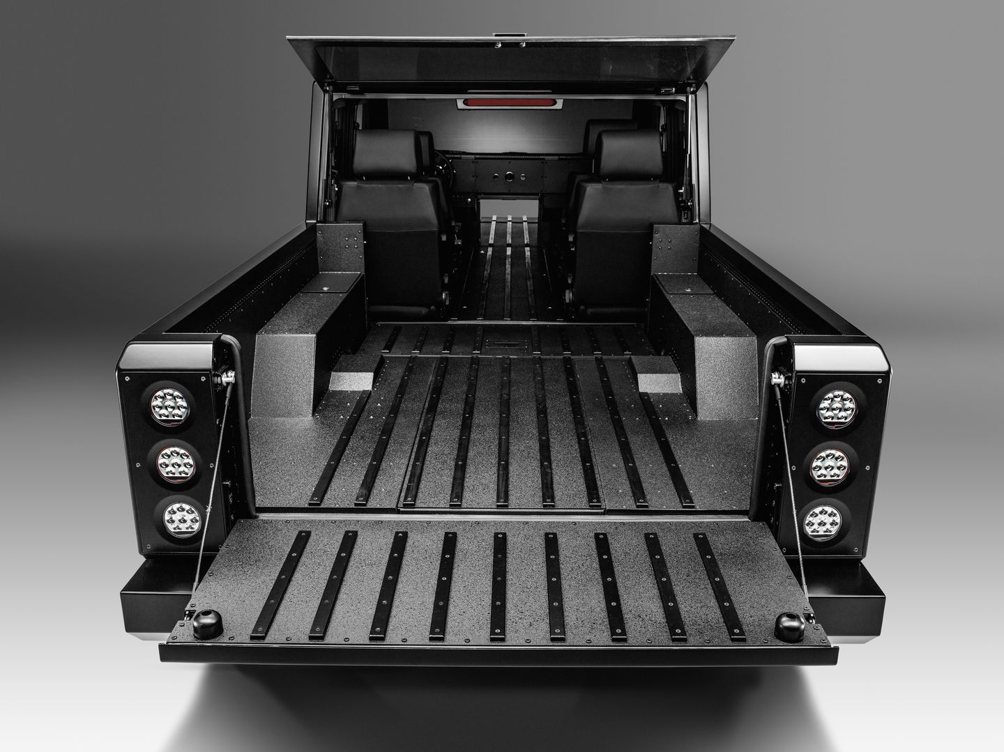Zatiaľ čo hranatým, až industriálnym dizajnom karosérie ide automobilka vlastnou cestou, v prípade pohonu siaha po očakávanej kombinácie. Dvojica elektromotorov ma kombinovaný maximálny výkon 457 kW (614 k) a najvyšší krútiaci moment 905 Nm. O dostatok energie sa stará akumulátor s celkovou kapacitou 129 kWh. Podľa aktuálne zverejnených informácií by autám mal šprint z 0 na 100 km/h trvať 4,5 sekundy, maximálna rýchlosť bude elektronicky obmedzená na 160 km/h. Plne nabitý akumulátor by mal vystačiť na 320 kilometrov. Samozrejme, všetko záleží na tom, ako bude majiteľ auto používať. Ťahať ním totiž môžete až 3,2 tony! S drsným vzhľadom budú korešpondovať aj schopnosti v teréne. Popri pohone 4×4 bude mať majiteľ k dispozícii aj výškovo nastaviteľný podvozok. Svetlosť si bude vedieť upraviť v rozsahu 250 až 500 milimetrov. Špeciálny terénny mód by vraj mala mať aj prevodovka.