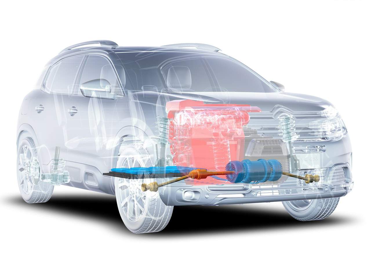 Pod kapotou vozidla sa bude nachádzať známy 1,6-litrový štvorvalec PureTech s výkonom 132 kW / 180 koní. Benzínový agregát je spriahnutý s elektromotorom o výkone 80 kW. Ten sa ukrýva medzi spaľovacím motorom a osem stupňovou automatickou prevodovkou e-EAT8. Maximálny výkon v spojení s hybridnou jednotkou tak je 165 kW / 225 koní. Najvyšší krútiaci moment hybridného Citroënu C5 Aircross je 320 Nm. Možnou nevýhodou bude absencia druhého elektromotoru na zadnej náprave.