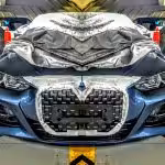 Zachytávajú prednú aj zadnú časť vozidla, pričom zvyšok ostáva ukrytý pod plachtou. Napriek tomu, že fotografie odhaľujú novú štvorku len čiastočne, môžeme na nich vidieť podstatné prvky. Tak ako sa dalo predpokladať, nechýba ani očakávaná obrovská predná maska. Tá rozdelila fanúšikov značky na dva tábory už pri faceliftovanom rade 7, či vlajkovej lodi X7. Naznačuje aj to, že práve toto bude ikonický prvok pre budúcnosť značky BMW.