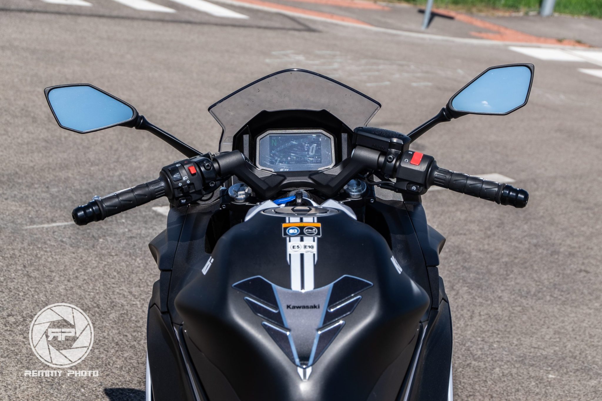 A ako je už zvykom, pri modeloch od Kawasaki na motorke nesedíte, sedíte totiž „v nej“. To aj vďaka sedlu, ktoré je výrazne zapustené medzi nádrž a zadnú spolujazdcovou sedačku, čo pomáha k udržaniu ťažiska motocykla čo najnižšie.