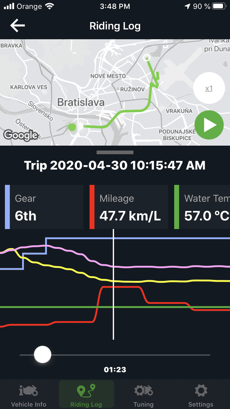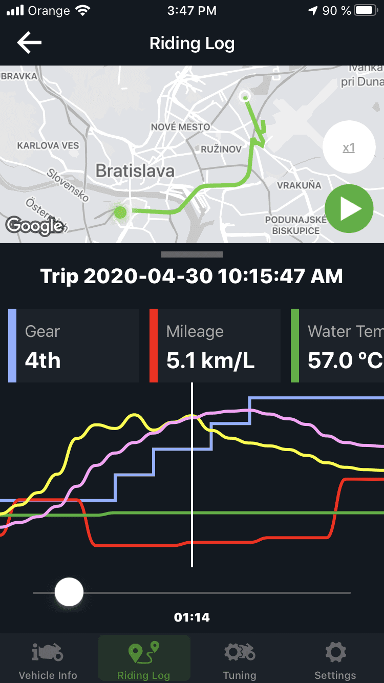 Avšak tou najväčšou výhodou tohto systému je, že si pomocou aplikácie viete nastaviť rôzne parametre motocykla a pre tých z nás, čo majú radi rôzne informácie o jazde, si ich viete stiahnuť do telefónu a pozrieť si kompletnú telemetriu (to však záleží od vybavenia jednotlivých modelov). Tú si však predstavíme podrobnejšie pri niektorom nasledujúcom modeli.