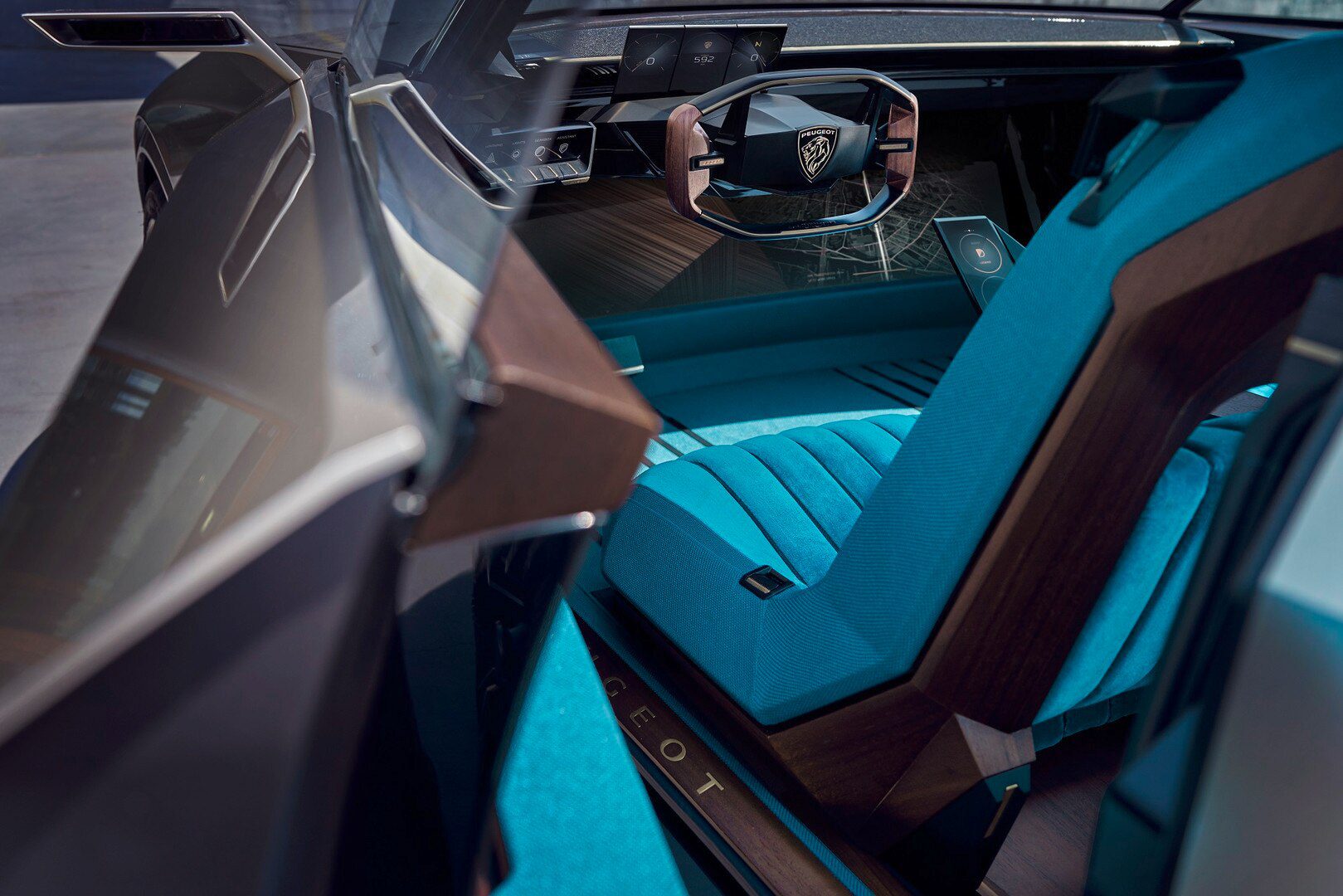 V štúdií Peugeot e-Legend dostali sedadlá novú definíciu. Keďže vozidlo nedisponuje volantom a je teda plne autonómne, v kabíne vytvára prostredie, ktorého hlavným cieľom je trávenie chvíľ so spolucestujúcimi. Predné sedadlá sa teda nemusia prispôsobovať palubnej doske a navyše sú vyrobené z tenkého no pevného kompozitu, čo vytvára viac miesta pre posádku. Aj takto môžu vyzerať sedadlá budúcnosti.