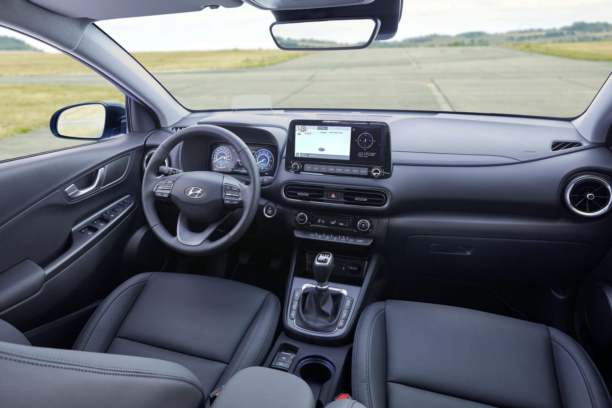 Interiér, ktorý sa nesie v duchu displejov nie je pre Hyundai žiadnou novinkou. Už nový model i30 ukázal smerovanie automobilky v znamení digitalizácie. Hyundai Kona to len navyšuje na novú úroveň. Okrem displejov došlo v interiéri aj k materiálovým zmenám. Kona je po novom distupná s prepracovanou stredovou časťou, ktorá podčiarkuje horizontálne členenie interiéru. Nová je aj technológia ambientného osvetlenia, ktorá je v oblasti držiaku na nápoje a nôh. O vyššej úrovni kvality a spracovania svedčia aj kruhy okolo reproduktorov a výduchov klimatizácie s hliníkovou povrchovou úpravou. V novej Kone môžeme očakávať aj nové farebné kombinácie poťahov.
