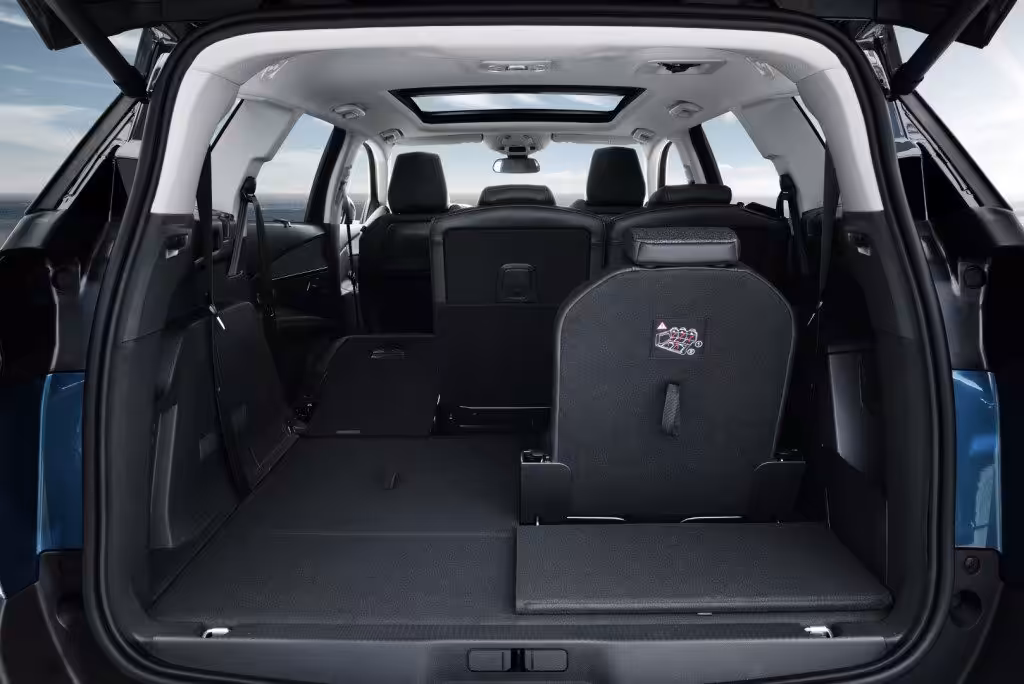 A keďže sa jedná o rodinné a rovnako úžitkové vozidlo, vzadu sa nachádza batožinový priestor s objemom 952 litrov. To je podstatne viac ako v prípade modelu 3008. V treťom rade sú sedadlá odnímateľné a po ich odstránení sa do kufra zmesti až 1060 litrov. Po sklopení druhého radu sedadiel sa odhalí jasných 2 150 litrov priestoru.