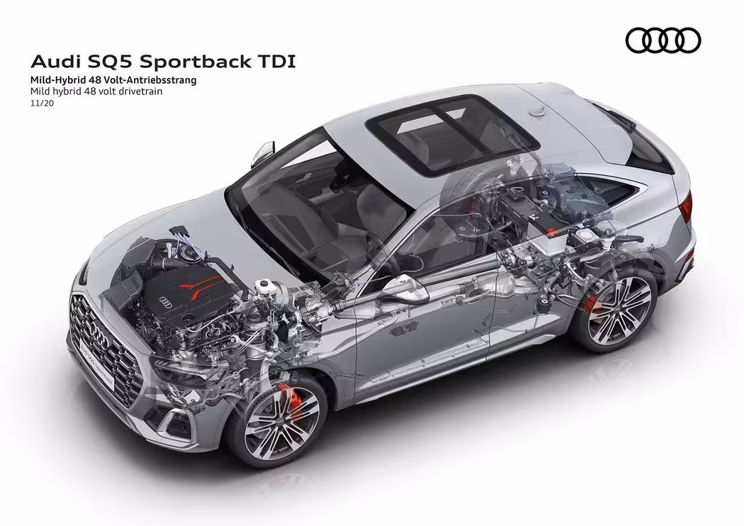Agregát 3.0 TDI je dobre známym motorom. V tomto prípade však ide o inovovanú verziu, kde automobilka upravila niekoľko motorových komponentov. Motor je vybavený dvoma systémami , ktoré prospievajú k zníženiu spotreby a zlepšujú reakcie motora. Systém mild hybrid dokáže pri spomaľovaní rekuperovať energiu až do 8kw.Vďaka tomu môže športové SUV dobiehať 4O sekúnd s vypnutým motorom, potom výkonný generátor opäť naštartuje motor. Druhým systémom je elektricky poháňaný kompresor, ktorý podporuje turbodúchadlo v prevádzkových režimoch motora. Vďaka tomu motor spontánne reaguje na zmeny polohy akcelerátora aj pri nízkych otáčkach.