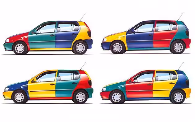 Z tohto dôvodu teda existovali štyri základy, ktorých farbu má auto zapísanú v technickom preukaze. Najjednoduchšie ju môžete určiť pomocou dielov strechy, C-čkového stĺpika a prahov, ktoré majú vždy rovnakú farbu, keďže z výrobnej linky vyliezli ako jeden kus. Nižšie sú zobrazené štyri varianty, v ktorých ste mohli Polo Harlekin behať na cestách.