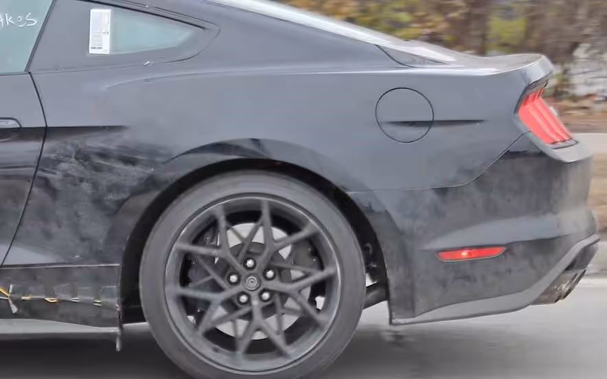 Odhalený testovaný model má na všetkých štyroch kolesách káble, ktoré sú spojené so snímačom vo vnútri kabíny. Pozornému oku neunikne, že poloha brzdového strmeňa a súpravy parkovacej brzdy je oproti súčasnému modelu obrátená. To je pre tieto modely veľmi neobvyklé. Je to solídny údaj o tom, že sa v skutočnosti pozeráme na medzičlánok s pohonom všetkých štyroch kolies novej generácie Fordu Mustang.