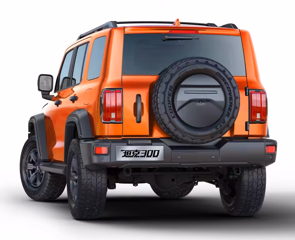 Krátko po odhalení Bronca bolo predstavené aj hranaté, no luxusné SUV s príznačným názvom Tank 300. Ide o výtvor prémiovej čínskej značky WEY, ktorá je súčasťou koncernu Great Wall Motors. Aký to má súvis? Nuž, už na prvý pohľad je zrejmé, kde sa čínska automobilka pri kreslení novinky inšpirovala: predné okrúhle svetlomety s bočnými linkami či zvislé zadné skupinové svetlomety až príliš nápadne odkazujú na modernizované Bronco. A keď už niečo neprípomína Bronco, tak v tom nájdeme Jeep Wrangler.