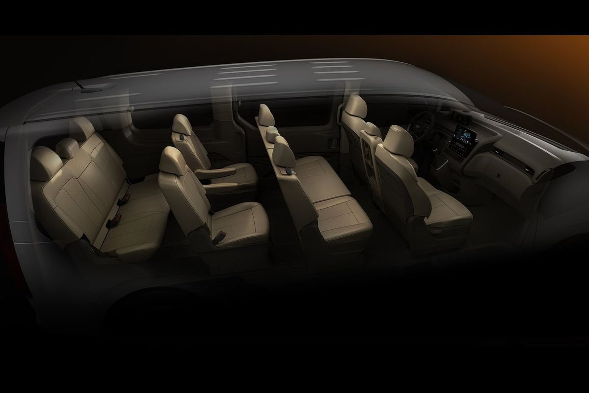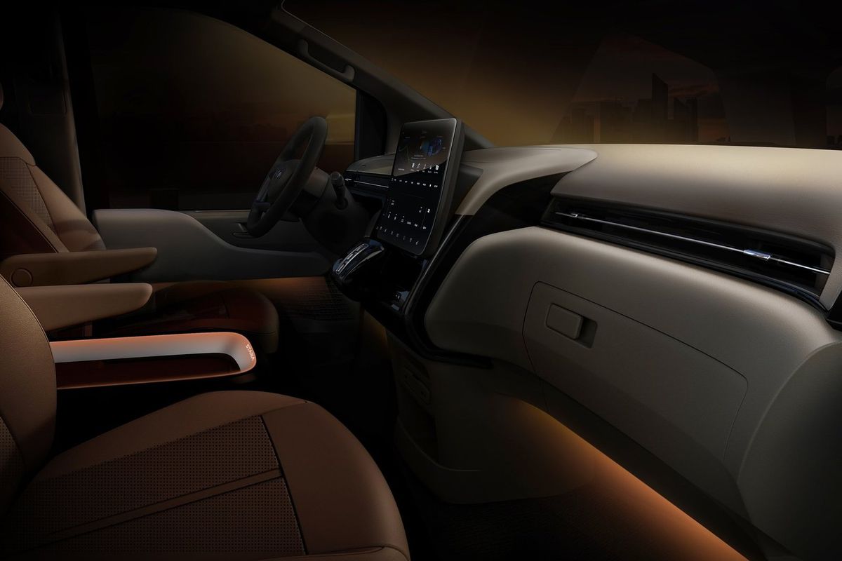 Z bočnej strany má Staria zníženú líniu. To zaručí dobrý výhľad a svetelnosť kabíny. Zadné vertikálne svetlá lemujú celé výklopné dvere. Novinka dostala high-tech kokpit s veľkým digitálnym displejom o veľkosti 10,25“. Napravo od prístrojovej dosky sa nachádza displej s dotykovým ovládaním a tlačidlá na volič prevodovky.