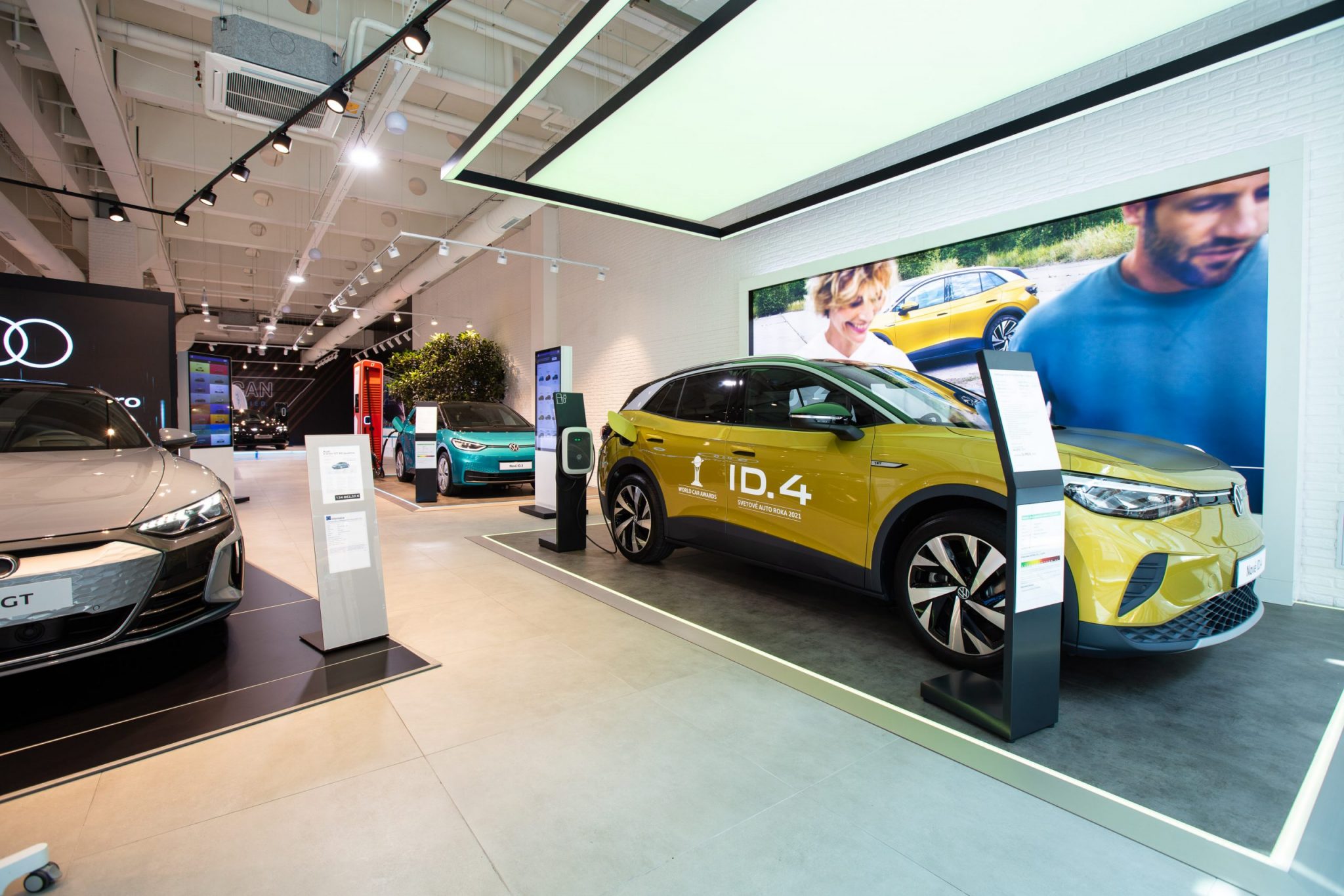 Expozícia ponúka hneď niekoľko modelov značiek VW, Audi a Porsche a bude k dispozícii od 6.5. 2021 do 6.11.2021. Pozrieť si môžete napríklad ID.3, ID.4 GTX, Audi e-tron GT, e-tron Sportback a najnovší Q4 e-tron a expozíciu dopĺňa aj značka Porsche modelmi Taycan a Taycan Cross Turismo. Pre záujemcov sú pripravené aj predvádzacie jazdy priamo v okolí nákupného centra.