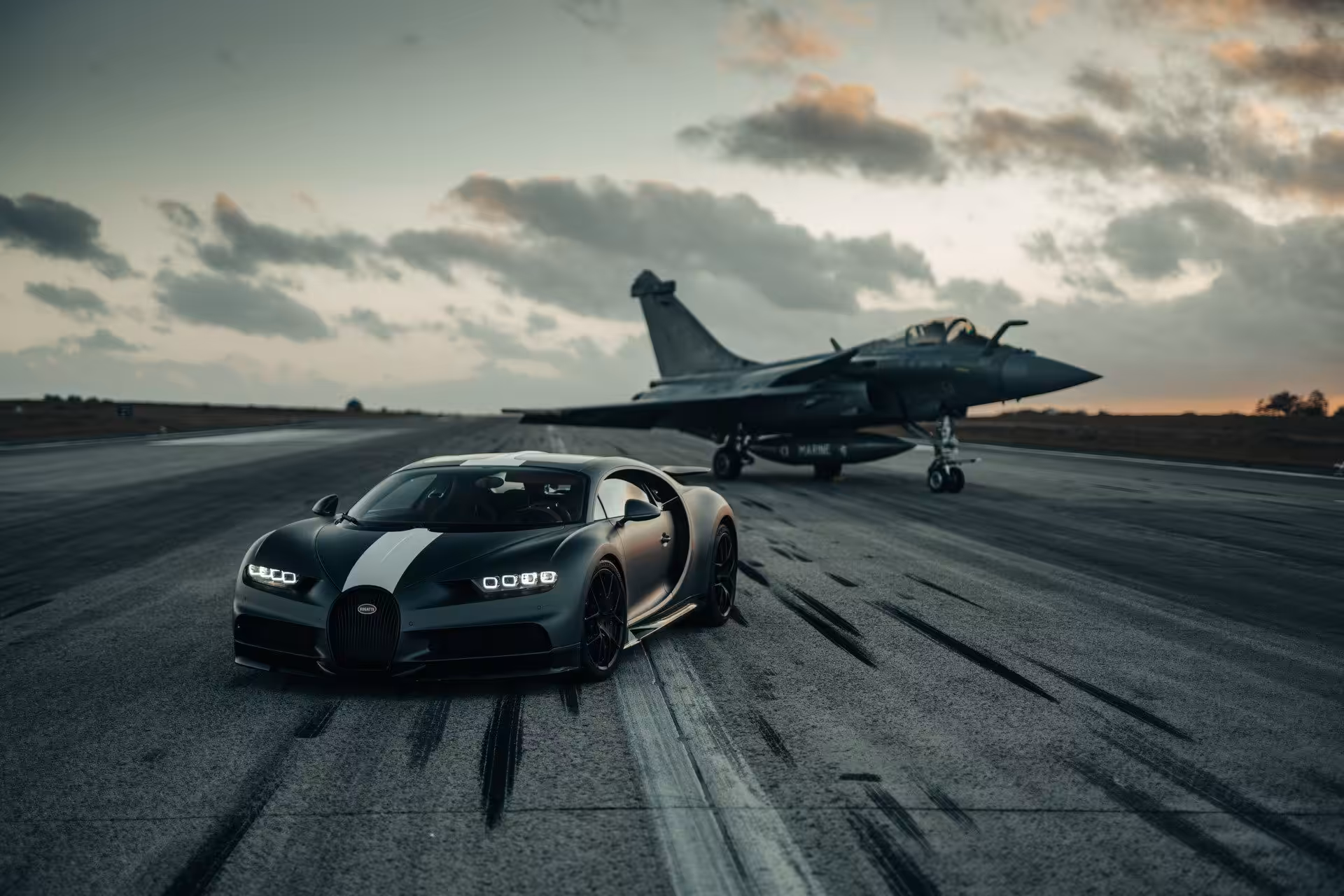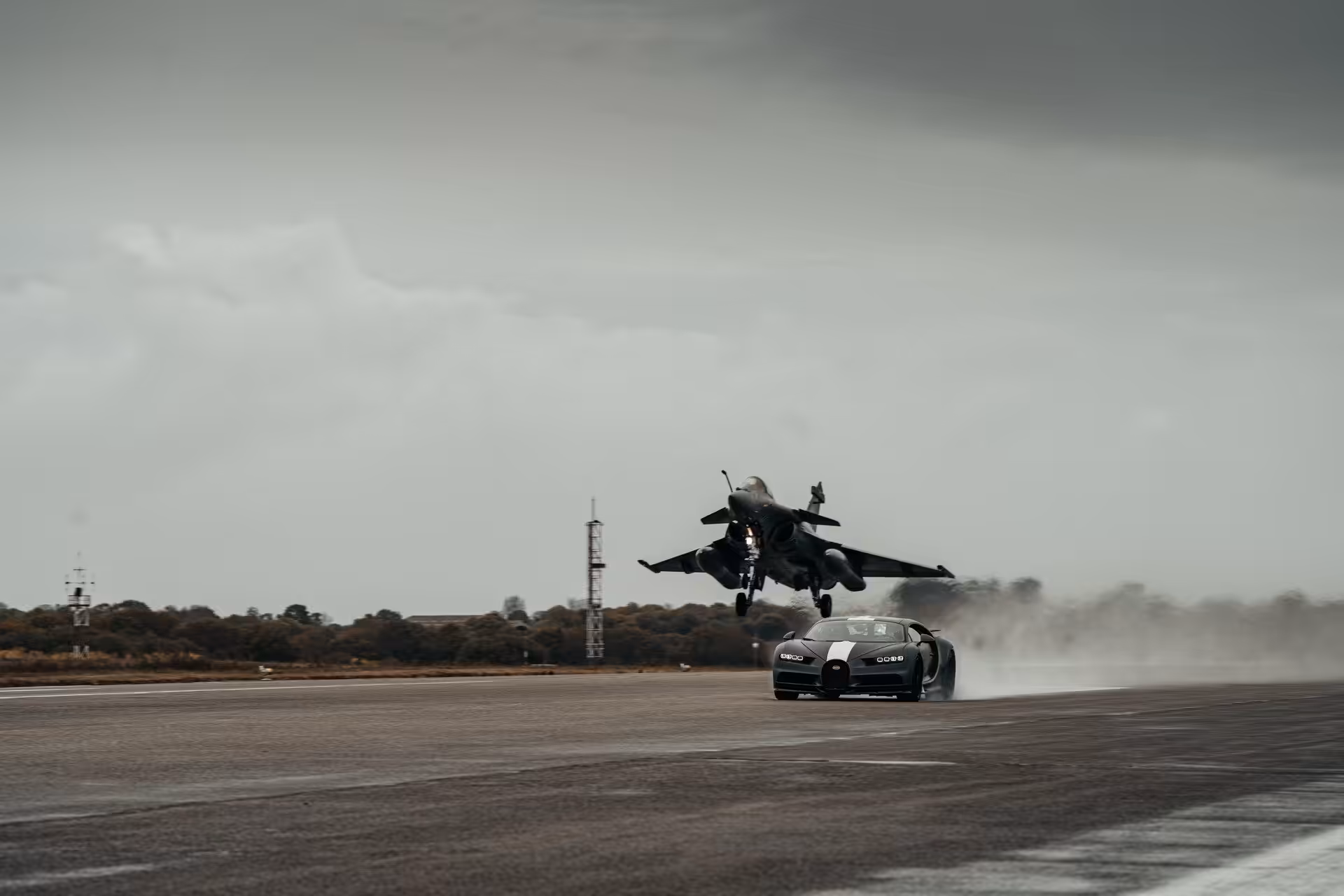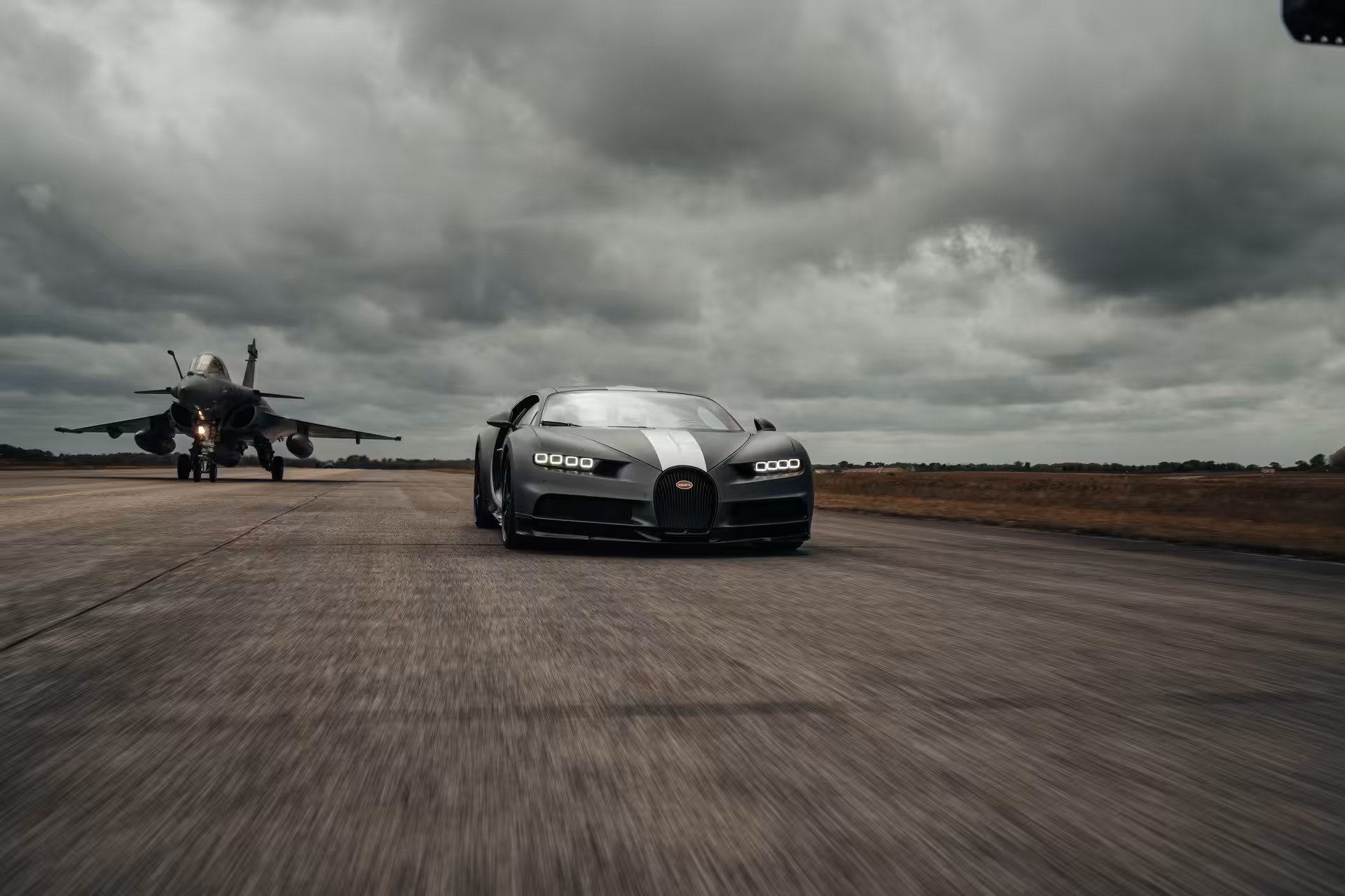 Niečo podobné sme však už mohli vidieť v britskej šou Top Gear. Vtedy sa do najrýchlejšieho auta sveta (tej doby) Bugatti Veyron posadil známy moderátor Richard Hammond a na letiskovej dráhe si to doslova rozdal s Eurofighter Typhoon. Francúzi teraz urobili remake, no nie s Veyronom ale s modelom Chiron. Takisto je aj stíhačka iná, tentoraz si zavolali na pomoc Dassault Rafale.