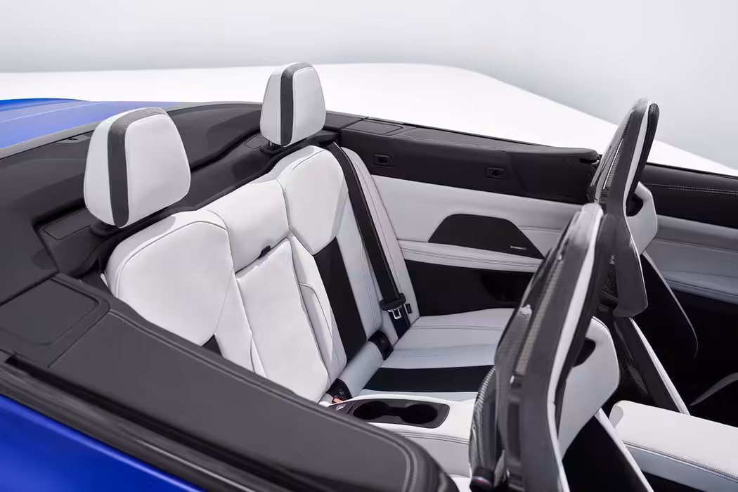 Interiér športového kabrioletu je vybavený v krásnej bielej farbe kombinovanej s čiernou a množstvom detailov M a tiež karbónovými detailmi. Napríklad na strednom paneli, na boku športových sedadiel a na športovom volante.