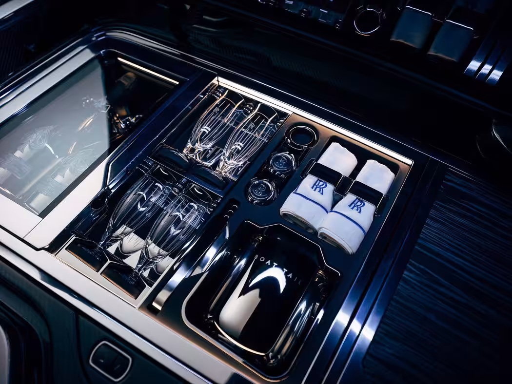 Meno Boat Tail už Rolls-Royce v minulosti použil a získal ho aj nový kabriolet. Boat Tail v preklade znamená lodný chvost. Luxusný kabriolet meria až 5,8 metrov a špeciálnou sa stane práve zadná časť, ktorá pôsobí ako na jachte. Konkrétny exemplár na fotografiách je vyrobený pre klienta, ktorý už vlastní aj staršie modely Boat Tail z roku 1932. V zadnej časti sa nachádza kompletná výbava pre stolovanie na cestách a farba lakovania je klientová obľúbená. Firma Christofle doplňuje zákazkovú sadu príborov, nádob a dve chladničky.