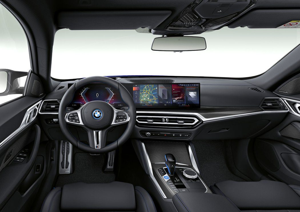 Samostatný kokpit poukazuje na svojich bratov BMW rady 3 a 4. Ako koncepciou, tak aj ovládaním. Vlastnosti nového BMW iDrive 8 už poznáme, no za pozornosť skôr stojí pár modrých doplnkov poukazujúcich na elektrický pohon novinky. Podobnosť so staršími súrodencami zrejme i4 nebudeme ani zazlievať. Bavori sa tak snažia o prehovorenie svojich zákazníkov na elektrický pohon, teda lepšie povedané, aby zvážili aj tento pohon. Osobne si myslíme, že po ergonomickej stránke BMW nie je čo vyčítať, nakoľko sa tento kokpit radí k jedným z najprepracovanejších, aj keď možno vyzerá staro a neobnovene, všetko má svoje miesto.
