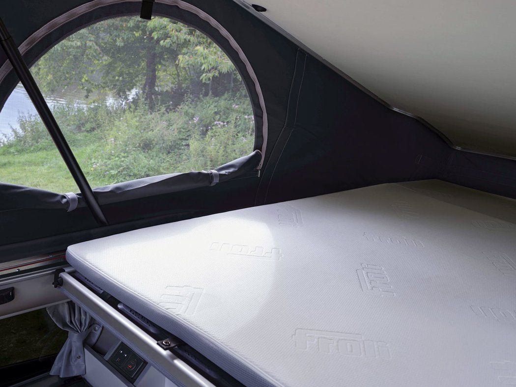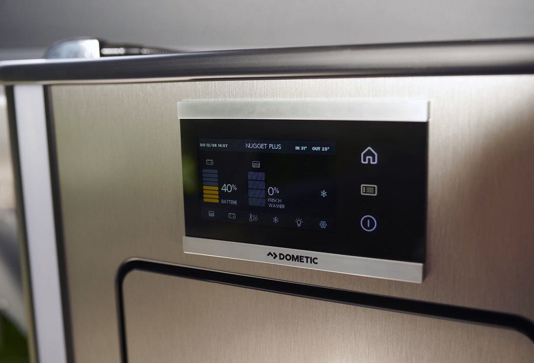 Vyklápacia strecha má dokonca aj okná spolu s vetracími otvormi, pre dostatočný prísun čerstvého vzduchu. Obe verzie majú farebný displej v obytnej časti, takže si hravo viete skontrolovať stav zásoby vody, ako máte nabitú batériu. Panelom sa ovláda aj bojler na ohrev vody.