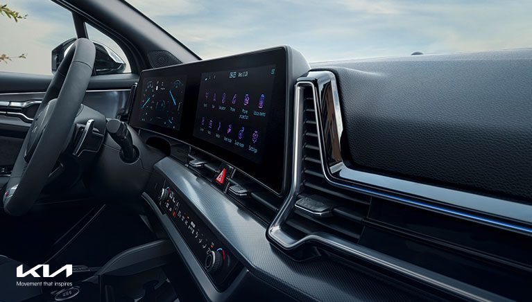 Vnútorný priestor bol navrhnutý tak, aby v sebe spájal prelomové technológie a luxusné prvky za použitia prémiových materiálov a moderného štýlu. V interiéry je stredobodom pozornosti veľký zakrivený dotykový displej, ktorý sa rozprestiera naprieč palubnou doskou. Dotykový 12,3 palcový displej infotainmentu doplňuje rovnako veľký displej v prístrojovom štíte. KIA sľubuje mohutný vnútorný priestor. Batožinový priestor ponúkne solídnych 591 litrov a po sklopení druhej rady sedadiel narastie až na 1780 litrov.
