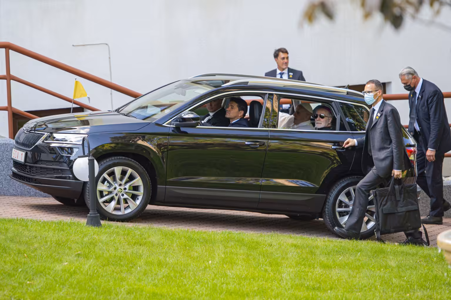 Pápež František je známy svojím ekologickým prístupom a pohľadom na svet a to sa odzrkadľuje aj na dopravných prostriedkoch, ktoré využíva. Pri príležitosti návštevy našej krajiny zvolil ľudovú značku Škoda s najnovším modelom Enyaq iV. Okrem bezemisného vozidla Škoda Enyaq iV je flotila doplnená o dve vozidlá Škoda Karoq, ktoré pri príležitosti návštevy pápeža poskytla Apoštolskej nunciatúre na Slovensku spoločnosť Škoda Auto Slovensko. Škoda okrem iného zabezpečovala prevoz pápeža Františka aj v Írsku v roku 2018.