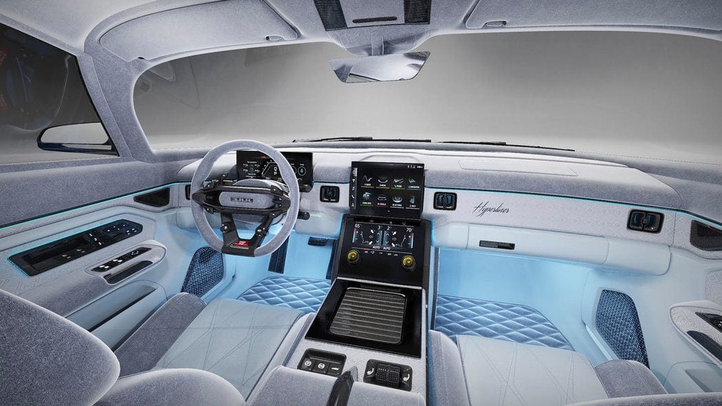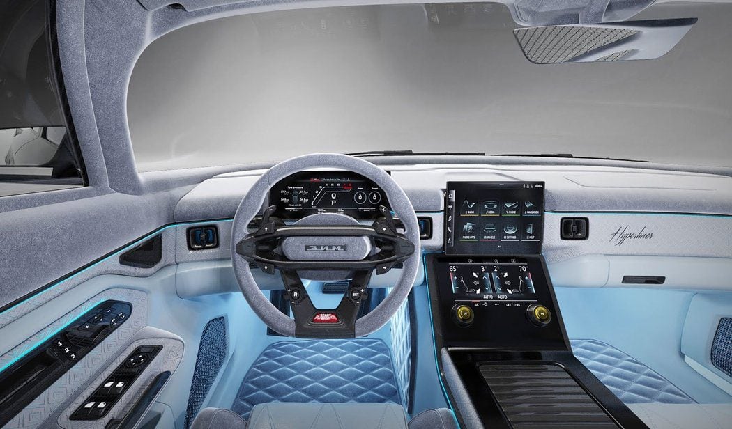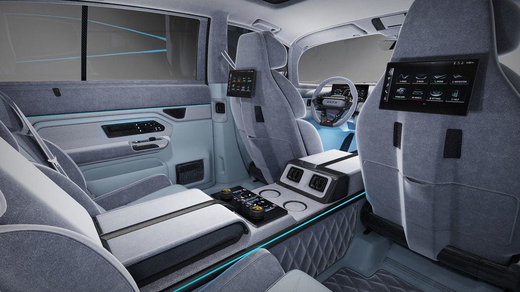 V interiéri potom ide vyslovene o moderný, ba až futuristický dizajn. Nechýbajú všadeprítomné displeje ako na palubnej doske, tak aj v opierkach predných sedadiel pre čo najvyšší komfort zadných pasažierov. Na pôvodný model odkazuje volant tvarom airbagu a hranaté výduchy klimatizácie.