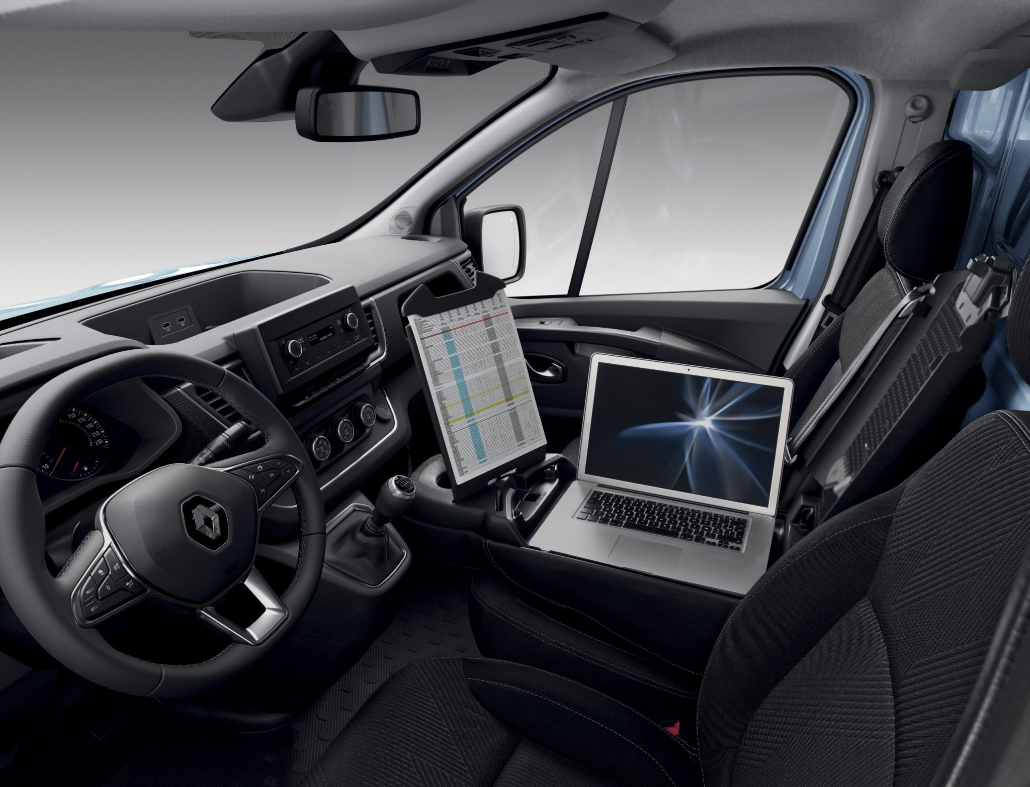 Renault vsádza na množstvo komfortných prvkov. Novinka ponúka napríklad elektricky sklápateľné spätné zrkadlá. Po sklopení stredného predného sedadla si vytvoríte akési pracovné miesto kam ľahko umiestnite rôzne dokumenty alebo počítač. Čo sa odkladacích priestorov týka, nový Trafic je v tomto smere naozaj veľkorysý. V interiéry odložíte dokopy až 88 litrov, pričom 54 sa nachádza pod predným sedadlom, čím sa novinka stáva najlepšou v triede.