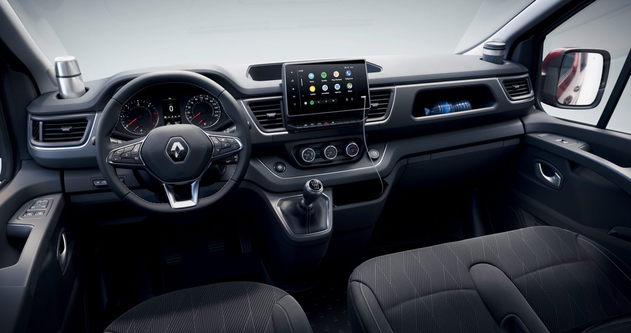 Renault vsádza na množstvo komfortných prvkov. Novinka ponúka napríklad elektricky sklápateľné spätné zrkadlá. Po sklopení stredného predného sedadla si vytvoríte akési pracovné miesto kam ľahko umiestnite rôzne dokumenty alebo počítač. Čo sa odkladacích priestorov týka, nový Trafic je v tomto smere naozaj veľkorysý. V interiéry odložíte dokopy až 88 litrov, pričom 54 sa nachádza pod predným sedadlom, čím sa novinka stáva najlepšou v triede.