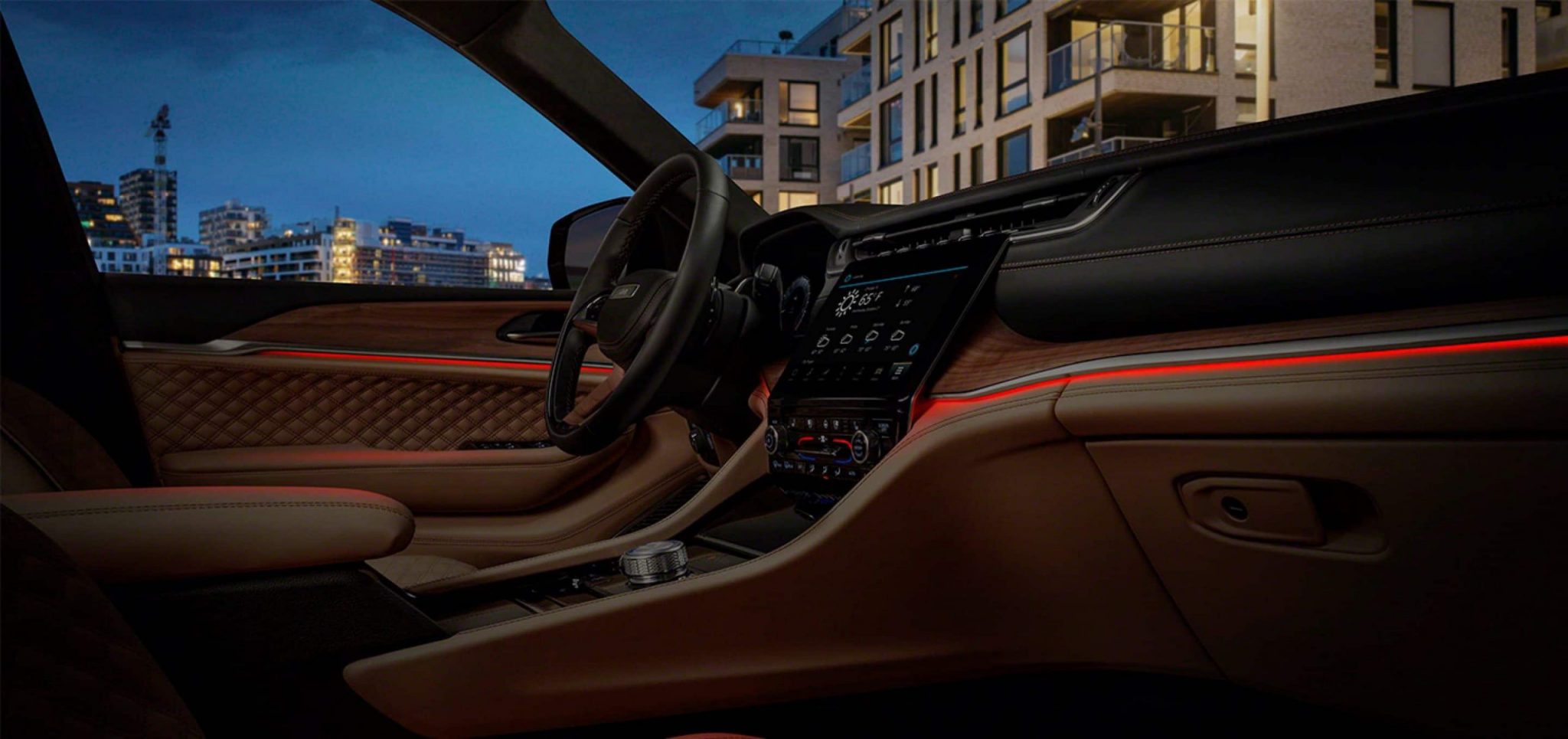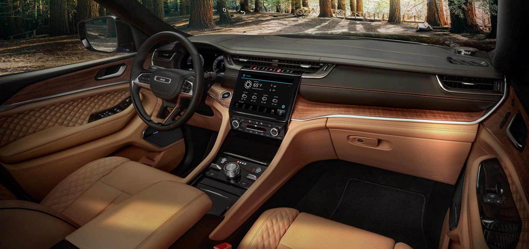 Nový viac prepracovaný interiér s najmodernejšími technológiami k veľkému robustnému SUV skutočne pristane. Do interiéru sa nasťahovala veľká obrazovka infotainmentu a na stredovej konzole bude mať k dispozícii displej aj spolujazdec. Ďalšie dve obrazovky môžeme nájsť aj v zadnej časti vozidla pre cestujúcich vzadu. Automobilka tvrdí, že nový palubný systém Uconnect 5 je až päťkrát rýchlejší ako v prípade predchodcu. Každopádne brali ohľad aj na bezpečnosť. Bezpečnostných funkcií je až 110 spolu s 360stupňovou kamerou a systémom nočného videnia. Môžeme teda povedať, že nová generácia Grand Cherokee je technologicky najvyspelejšia v histórii.