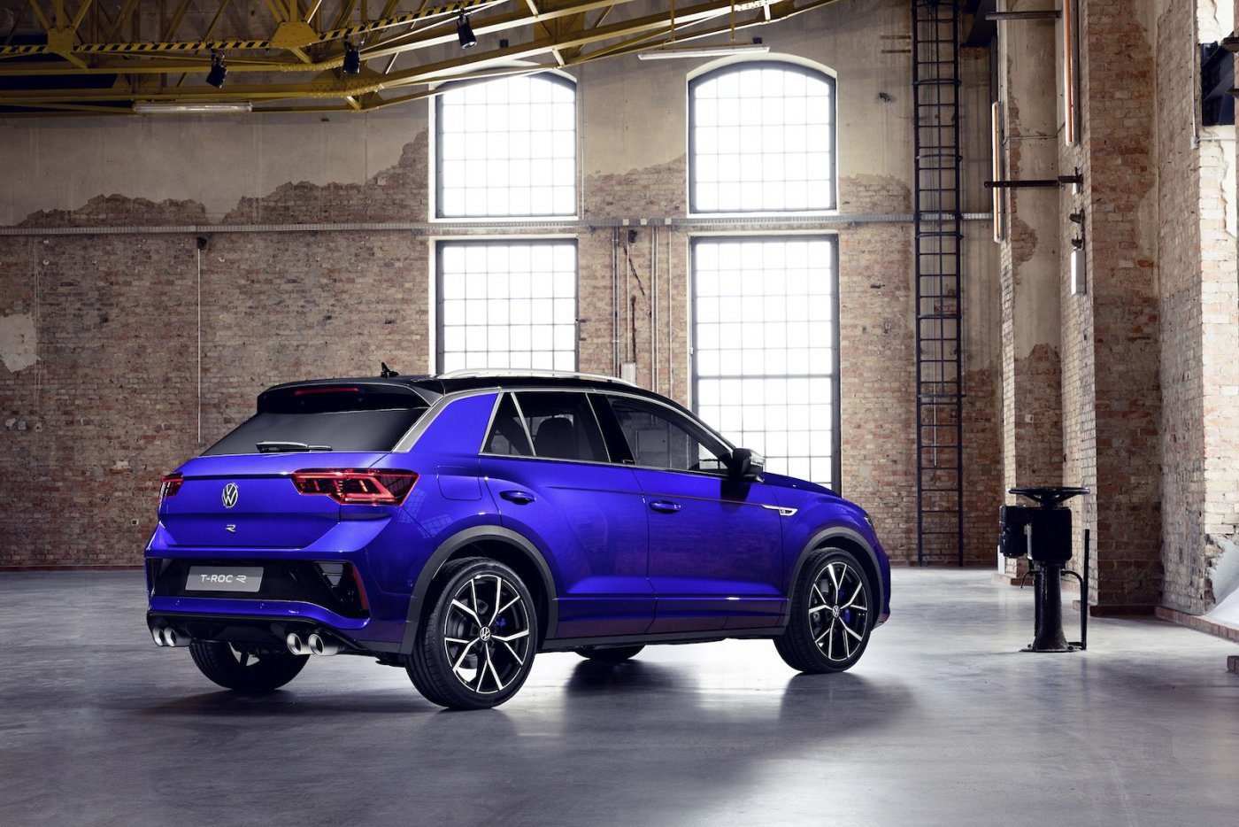 Môžeme si všimnúť iný vzhľad denného svietenia, ktoré sa presťahovalo na vrchné hlavné svetlomety. Hmlové svetlá sú umiestnené v spodnej časti nárazníku. Zadná časť T-Rocu R-Line a T-Rocu R pôsobí omnoho športovejším dojmom. Zásluhu na tom má hlavne svalnato tvarovaný zadný nárazník s výraznými otvormi na krajoch. R-Line a R majú však rozdielne koncovky výfukov. R verzia má reálne a za príplatok dokonca aj Akrapovič. Okrem toho sa odlišujú dvojfarebným lakovaním zadného nárazníku v prípade R. Samozrejme aj farbou, označením po stranách predných blatníkov a na maske chladiča či veku kufra.