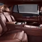 V interiéri nájdete kožené prešívanie takmer všade. Kde sa nenachádza koža, tam nájdete skutočný kov, drevo, či karbónové doplnky. G90 tak ponúkne maximálny zážitok aj pre tých najnáročnejších. Pre dojem maximálneho luxusu bolo do dverí integrované LED osvetlenie.