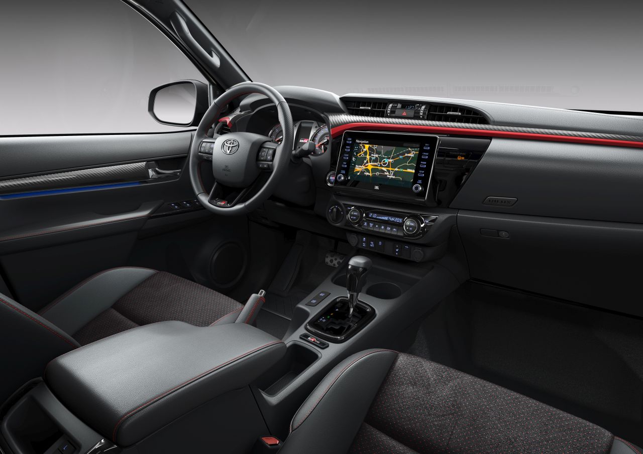 Samotná výbava GR Sport vychádza z pôvodnej Executive. Rátať tak môžeme s dvojzónovou klimatizáciou, bezkľučovým vstupom do vozidla, či asistentami pre zjazd a prešmykovaniu kolies. To je však takým štandardom pri pick-upoch. GR Sport bude vrcholom ponuky pre model Hilux. Vzhľadovo sa Hilux GR Sport odlíši od ostatných. Vpredu je čierna maska miesto loga tu bude celý nápis automobilky. Auto bude obuté na 17“ diskoch. Interiér disponuje športovými sedadlami v kombinácií čierna koža, brúsená koža a červené prešívanie.