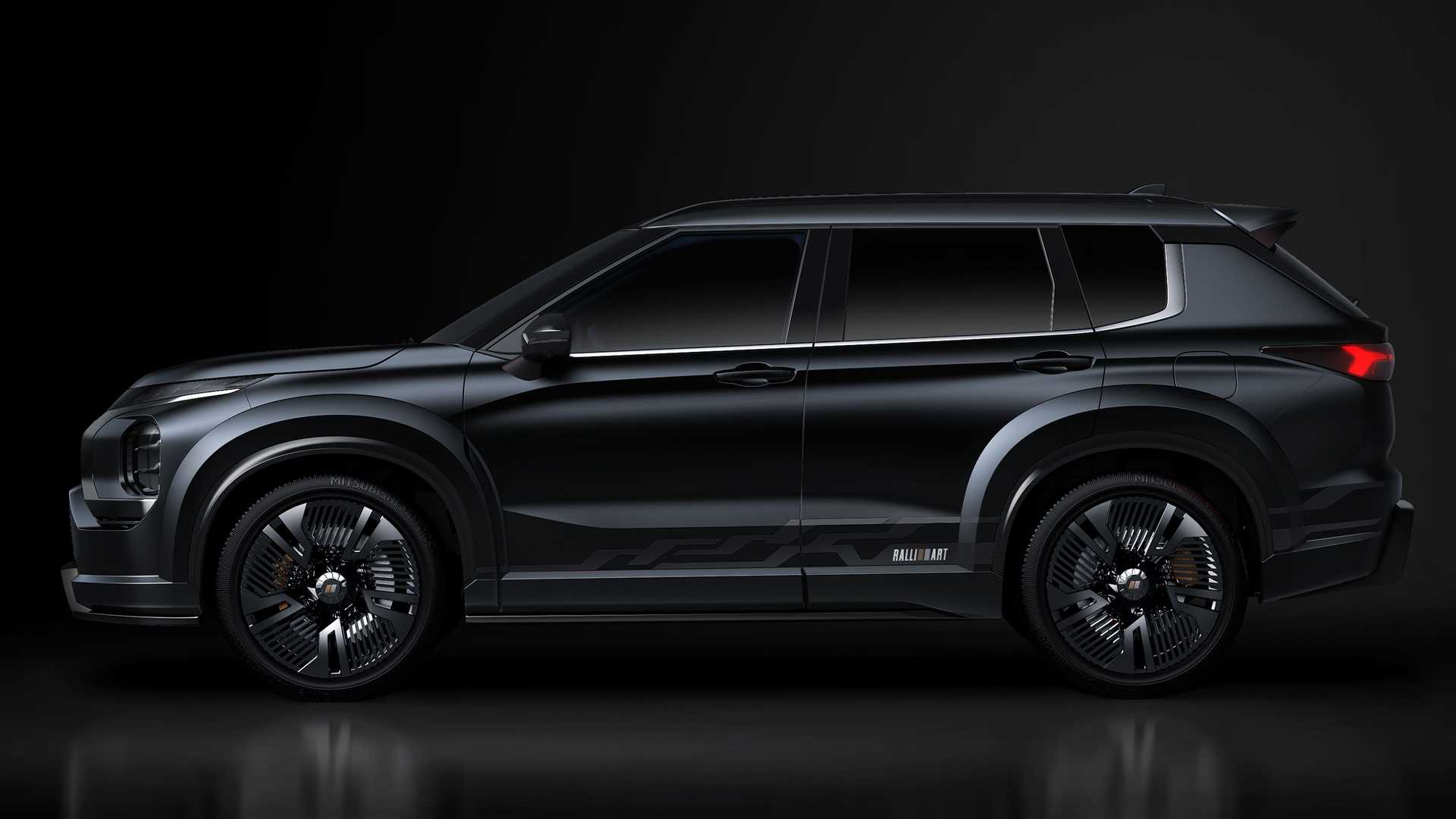 Koncept Vision Ralliart má rozšírené blatníky, aby sa do podbehov zmestili obrovské 22-palcové disky kolies. Nechýbajú agresívne pôsobiace nárazníky a originálna predná maska s logom Ralliart. Športovosť v zadnej časti podčiarkuje zadný difúzor. Agresívny celok dotvára farebná kombinácia čiernej karosérie a čiernych kolies. Na prvý pohľad vyzerá, že sa jedná o produkčné auto, nakoľko vychádza z novej generácie Mitsubishi Outlander. Konkrétne Plug-in hybridnú verziu, ktorú sme spoznali len pred pár mesiacmi.