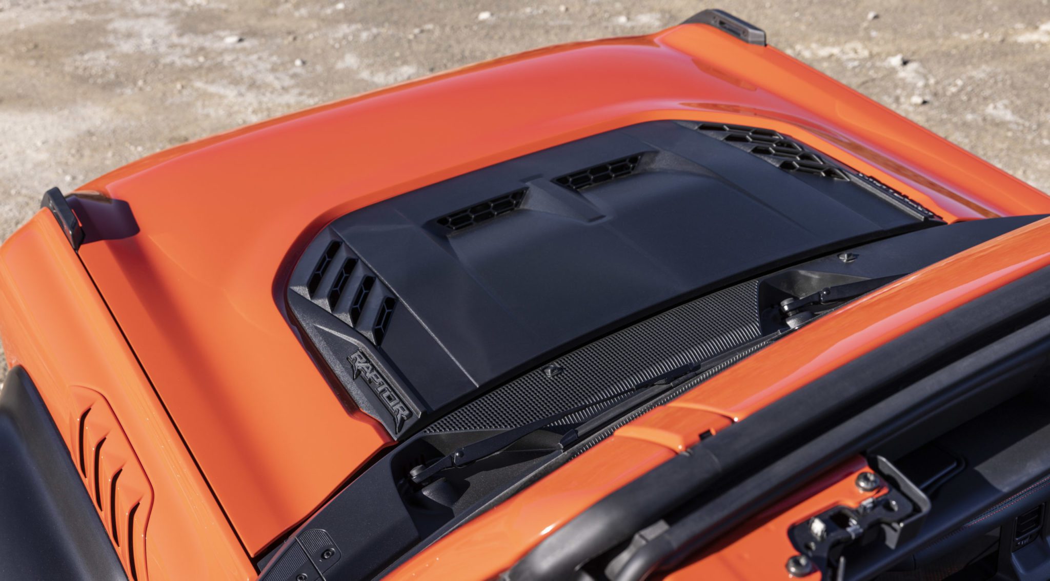 Bronco Raptor sa predstavil v päťdverovom prevedení kvôli požiadavkám zákazníkov a kvôli lepšej stabilite pri rýchlejšej jazde v teréne. Najvýraznejšou zmenou oproti štandardnej verzii sú ihneď badateľné mohutnejšie nadstavce blatníkov, ktoré zväčšili šírku o 25 cm. Veľké monštrum je obuté do 37-palcových pneumatík BFGoodrich. Predný nárazník sa taktiež upravil a dostal lepšiu ochranu spodnej časti motora a silné brnenie, ktoré chráni celý podvozok. V maske chladiča nechýba charakteristický nápis Ford a malé prídavné svetlomety. Na kapote a blatníkoch pribudli otvory. Vzadu sú špecifické svetlá a výstuž batožinového priestoru kvôli hmotnosti rezervného kolesa. Vozidlo disponuje aj odnímateľnými prvkami ako napríklad strešné panely alebo dvere.
